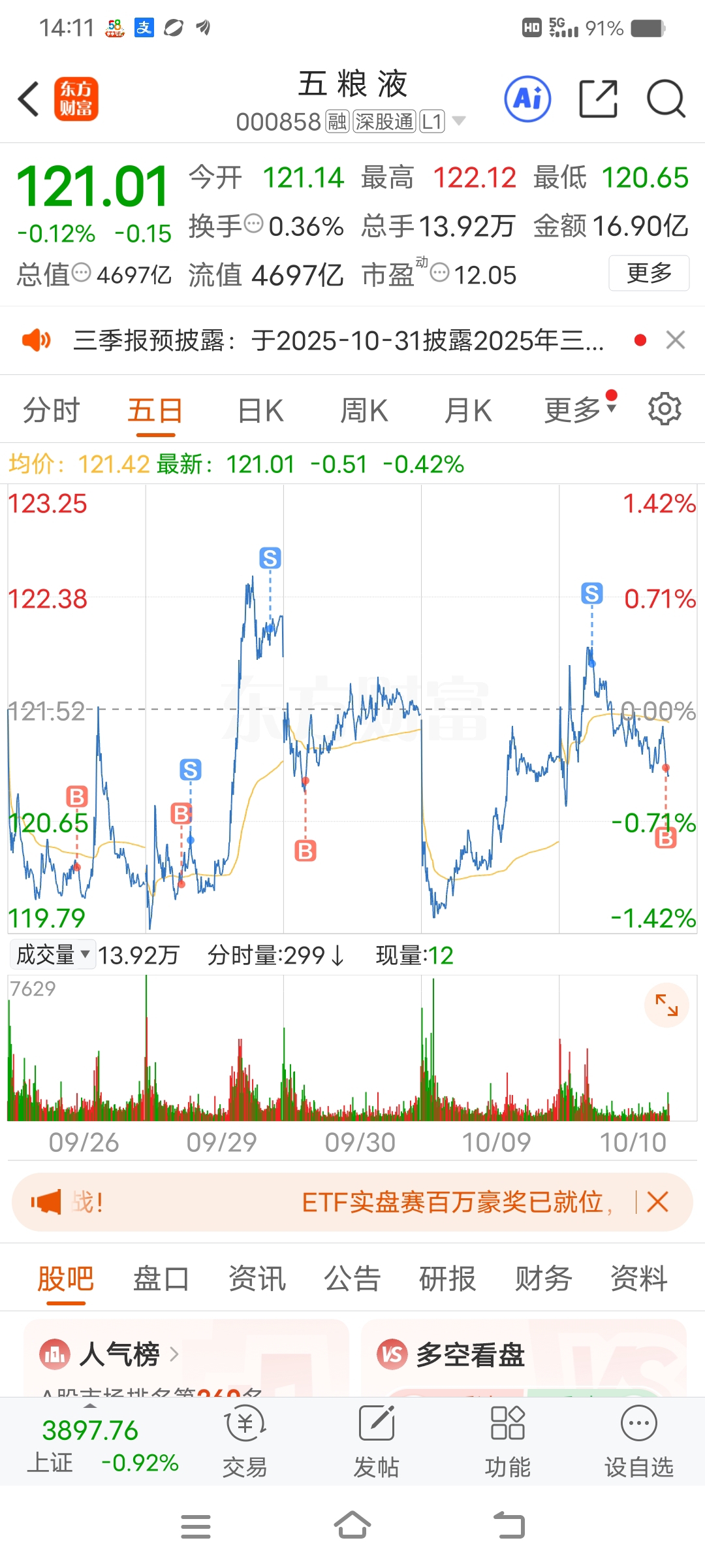 $五 粮 液(SZ000858)$ 一共就300股,天天弄个饭钱