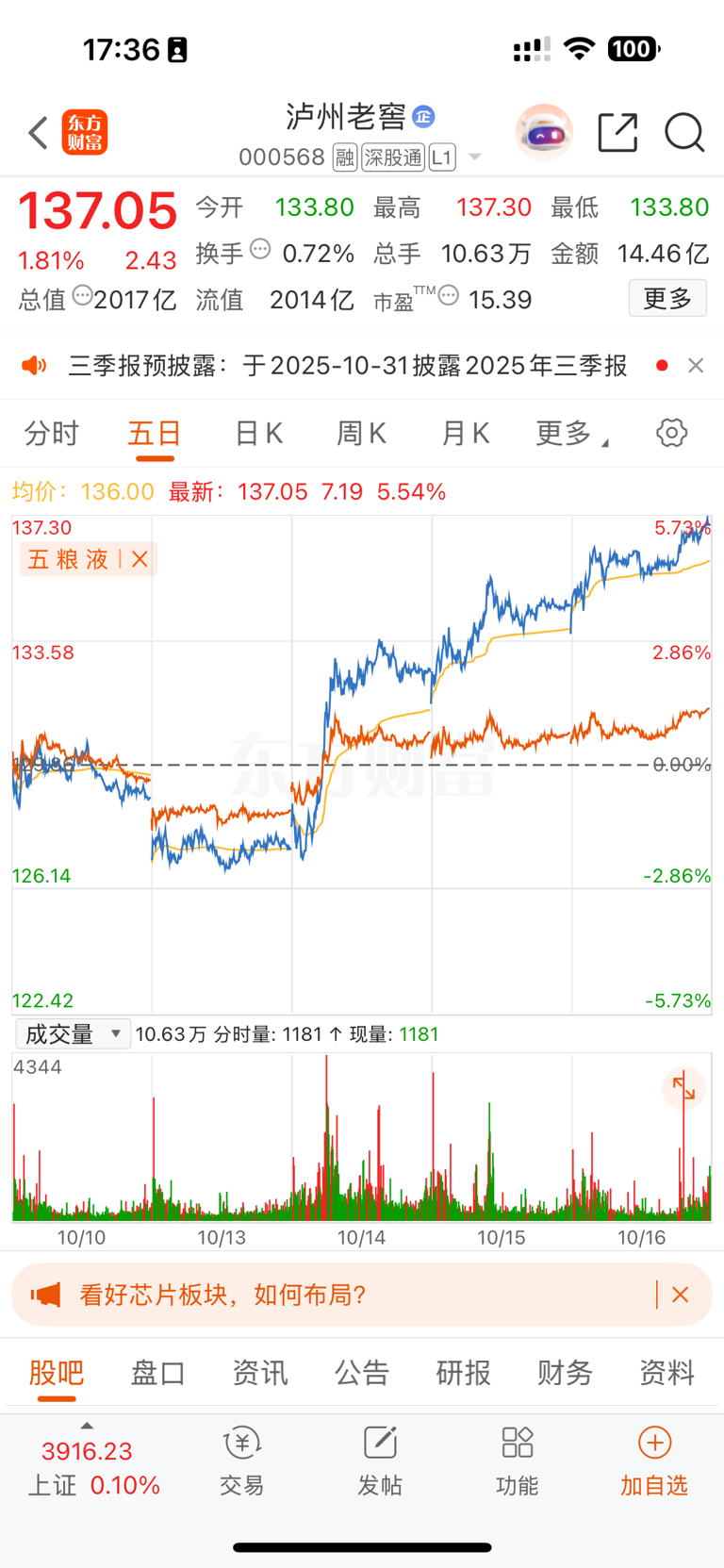 今天卖了五粮液换成了泸州老窖,我五哥太弱了