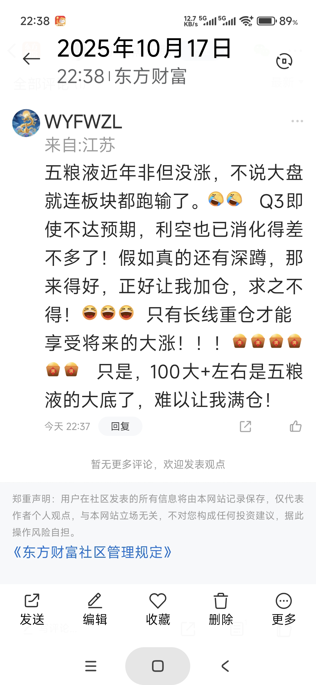 温馨提示: 1.根据《证券法》规定,禁止编造、传播虚假信息或者误导性信息,扰乱证券市场;2.用户在本社区发表的所有资料、言论等仅代表个人观点,与本网站立场无关,不对您构成任何投资建议。用户应基于自己的独立判断,自行决定证券投资并承担相应风险。《东方财富社区管理规定》