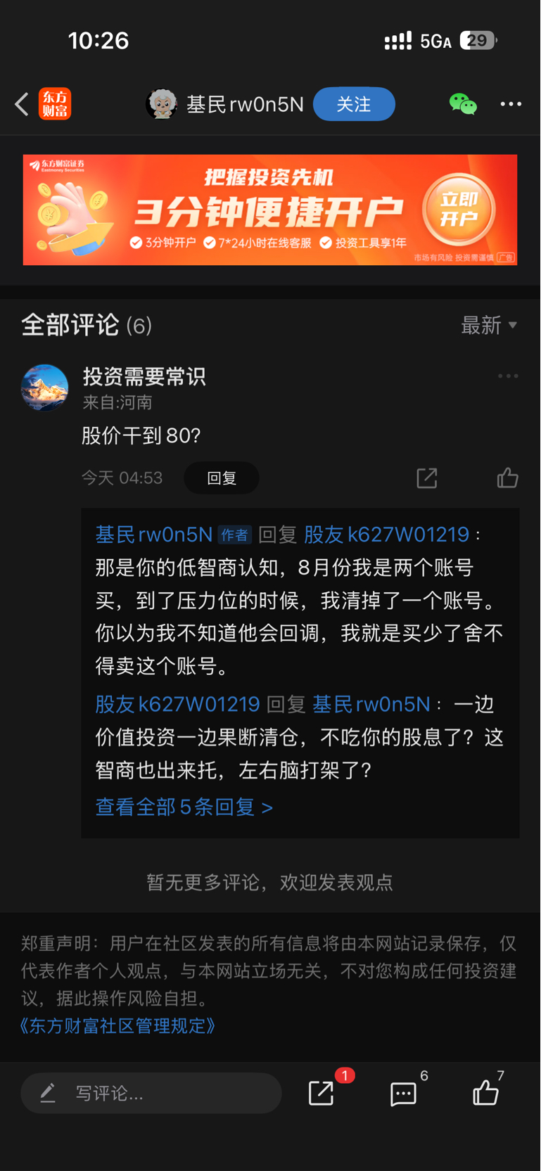 温馨提示: 1.根据《证券法》规定,禁止编造、传播虚假信息或者误导性信息,扰乱证券市场;2.用户在本社区发表的所有资料、言论等仅代表个人观点,与本网站立场无关,不对您构成任何投资建议。用户应基于自己的独立判断,自行决定证券投资并承担相应风险。《东方财富社区管理规定》
