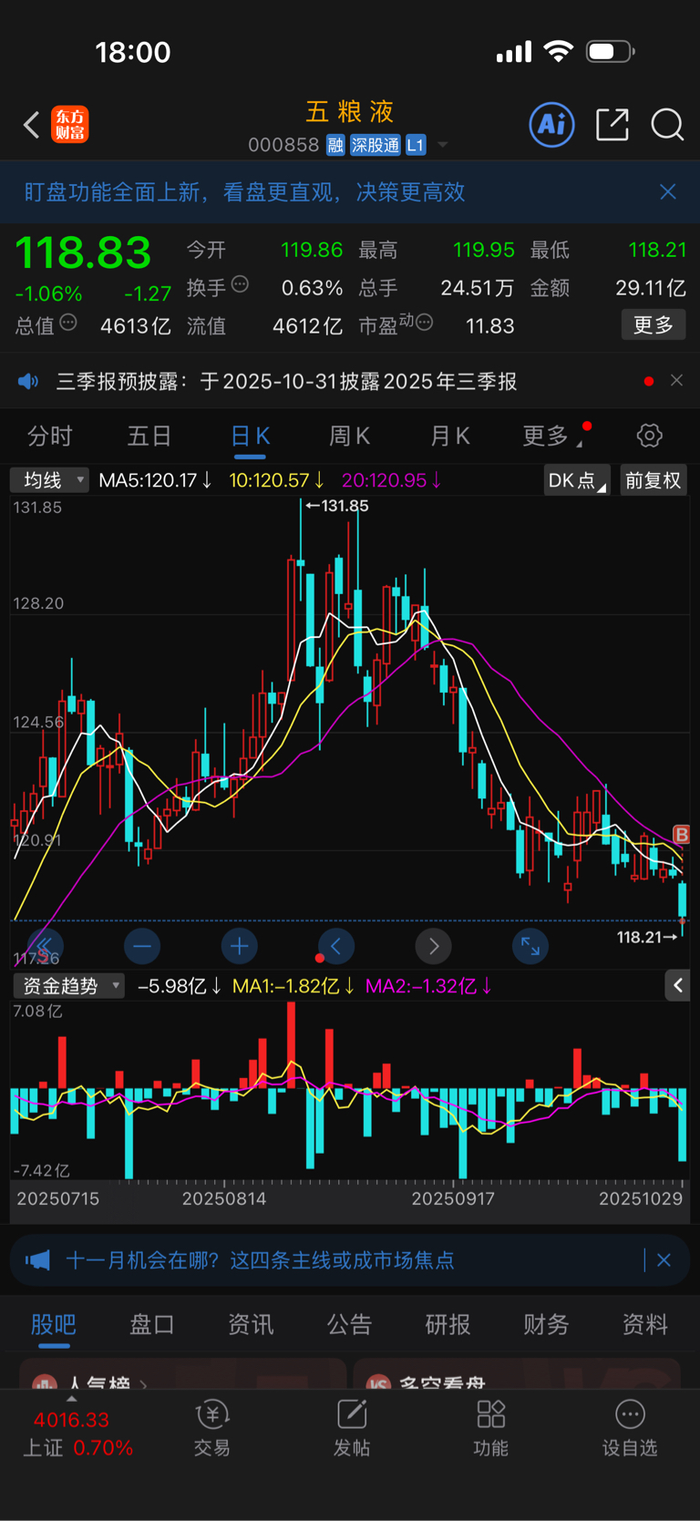 $五 粮 液(SZ000858)$ 哪有那么复杂啊。每次看到有人说白酒不行了,年轻人不喝白酒了,我都觉得可爱又可笑。我对五粮液太熟悉了,三个月前清的仓,今天重新建仓,这个价位100%赚钱啊。准备这次上130卖掉