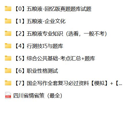 文件里,考试题之外,还包含了不少相关资料,例如企业文化、专业知识、时政热点、行测技巧、职业性格测试、公共基础等多个板块。