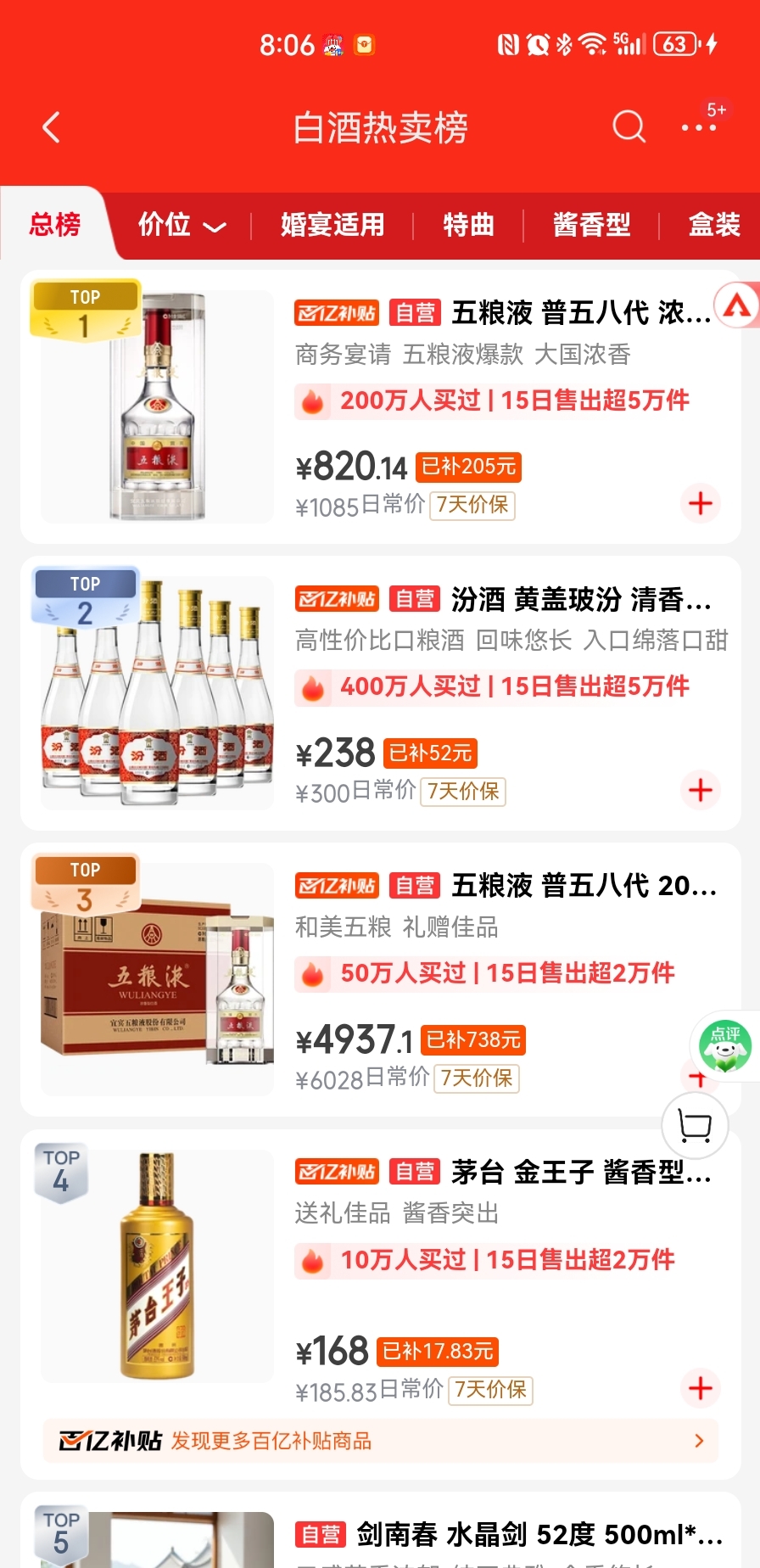 $五 粮 液(SZ000858)$ 白酒热卖榜不差啊