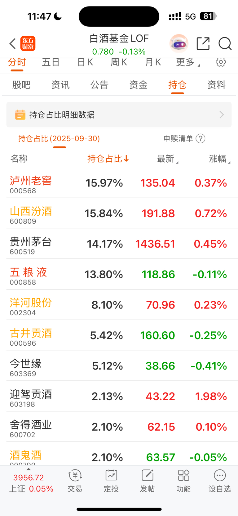 $五 粮 液(SZ000858)$ $泸州老窖(SZ000568)$ $山西汾酒(SH600809)$ 泸州老窖和山西汾酒市值是五粮液的一半,机构持仓反而比五粮液高,所以五粮液换成泸州和汾酒是对的,弹性大,比如汾酒和泸州能涨50%,五粮液也就涨10%,别问我为什么,数据在这
