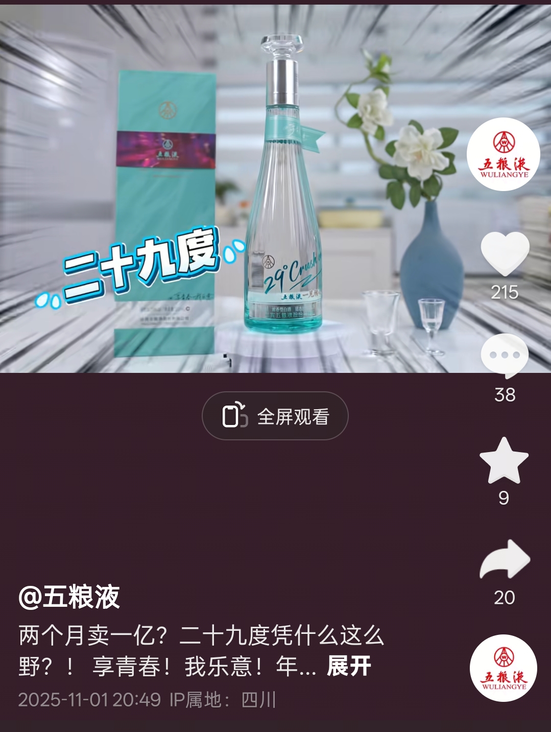 $五 粮 液(SZ000858)$ 来来来,关注五粮液抖音公众号,做最忠实的价值投资者。29度一见倾心,邓紫棋代言,买买买。