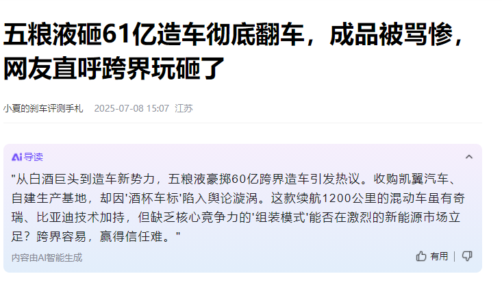 大股东五粮液集团和宜宾国资委,宁肯拿60亿去赔钱造车,