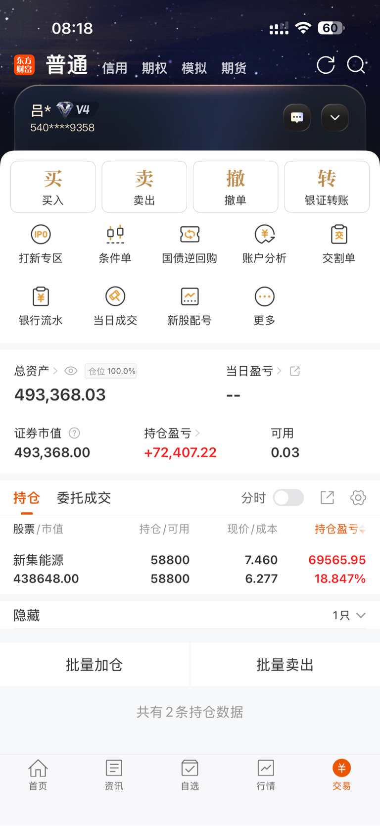 别人恐惧我贪婪,用另外一个账户建仓,跌5个点补仓一倍,拿长线,静待科技股泡沫破灭