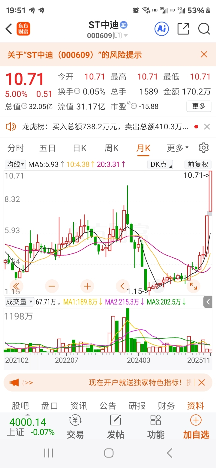 刚才发现一只好股小五不涨的原因就是业绩太好了挣的太多了!
