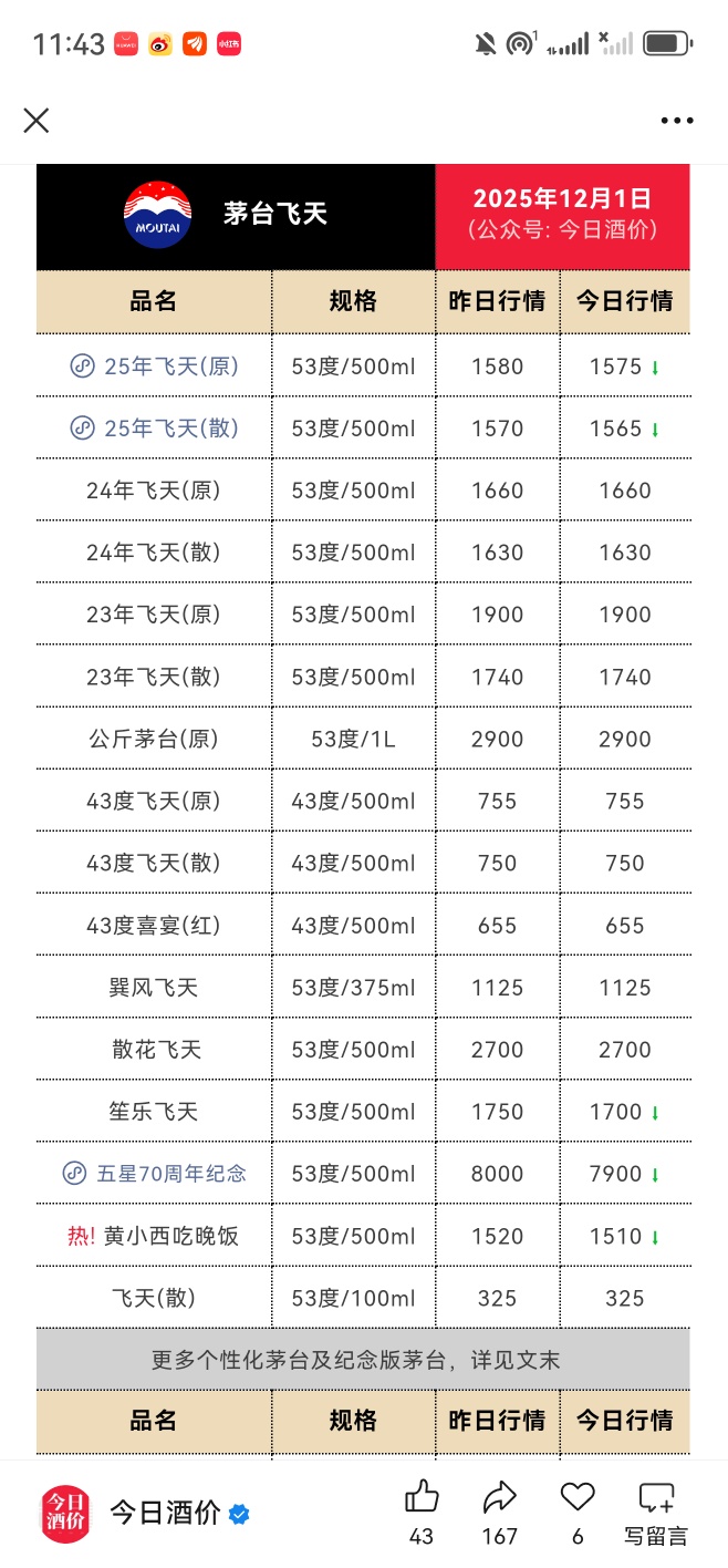 而且随着茅台换帅,控量保价的政策已成幻想,茅台的放量已经到来,短期内价格继续往下走,几成定局#文字图片信息#