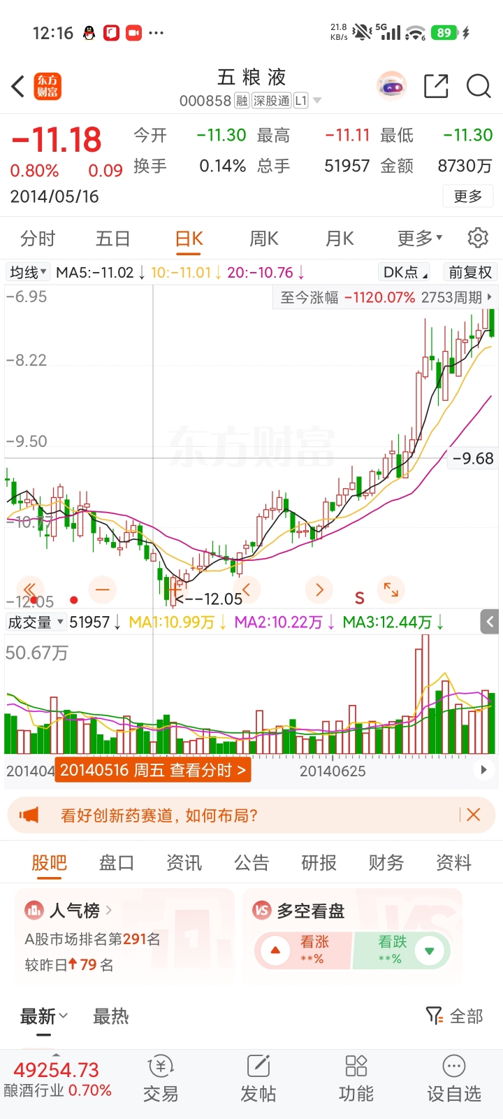 $五 粮 液(SZ000858)$ 2014年5月17日官宣降价,之后的走势……