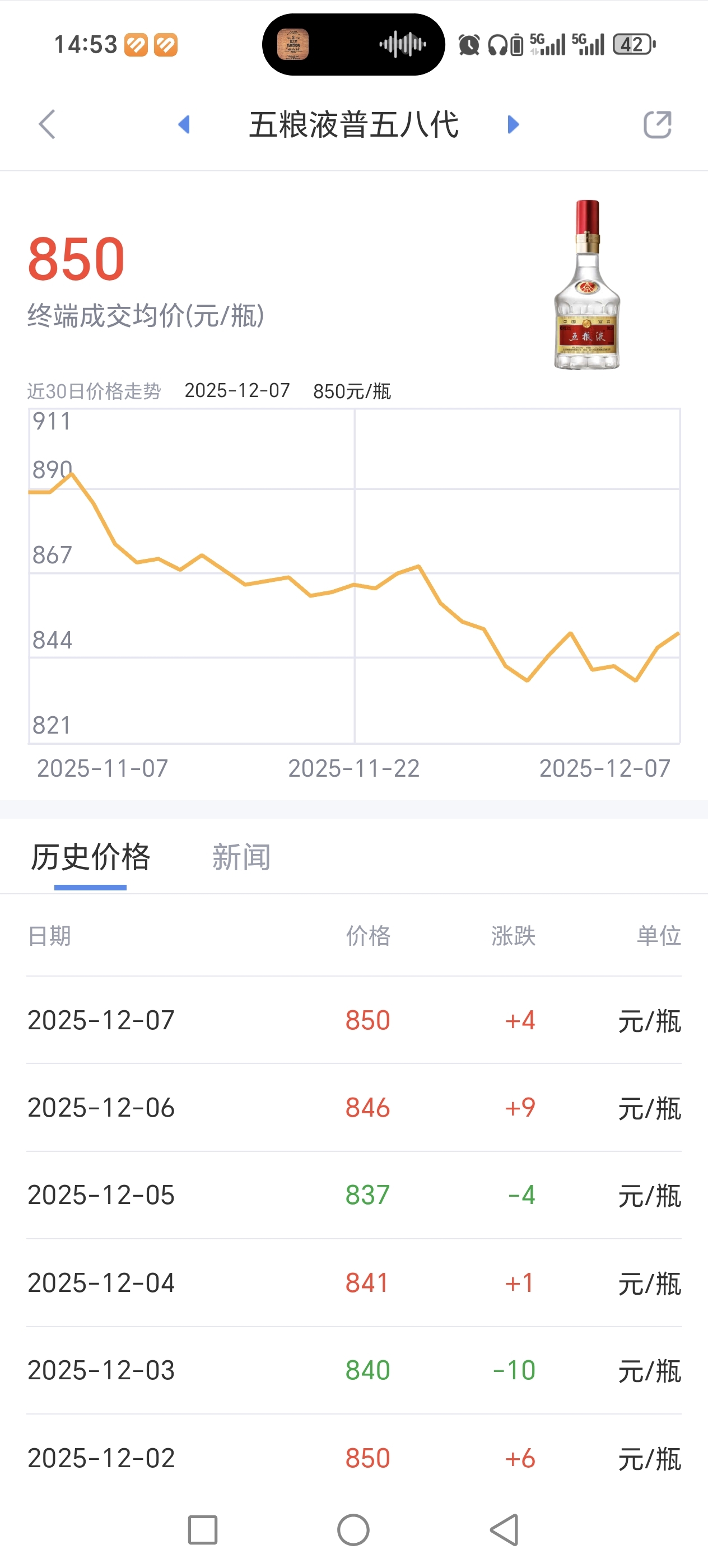 $五 粮 液(SZ000858)$ 850元/瓶