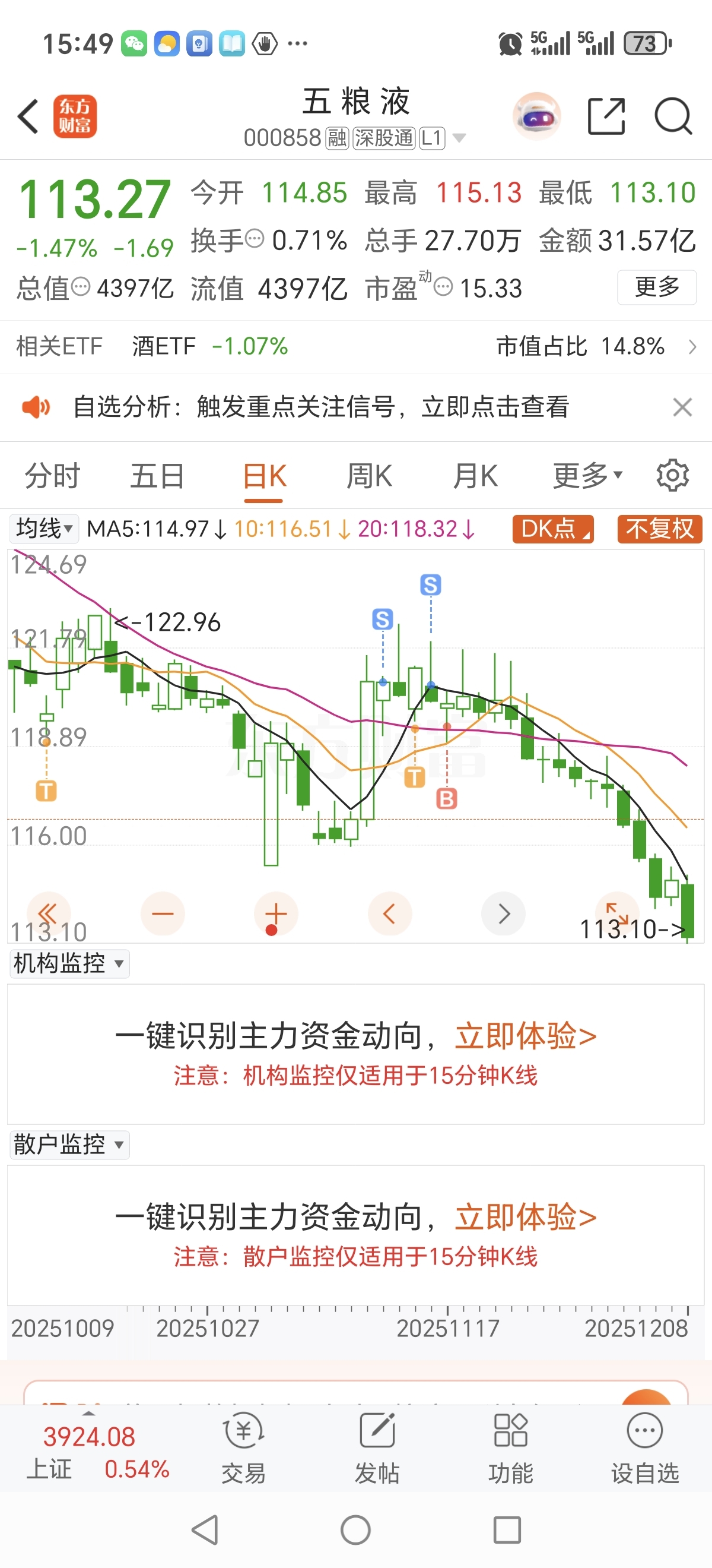 $五 粮 液(SZ000858)$ 主力,就问你怕不怕。