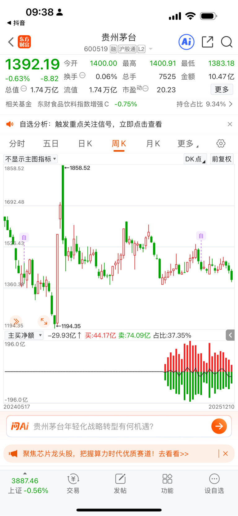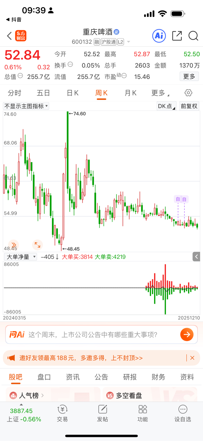 白酒在底部还连杀了一个月,最近走了加速,早上开盘继续下杀,暴打恐慌盘和融资客,该