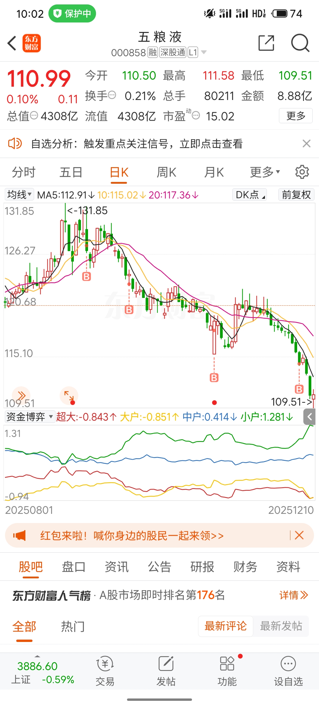 $五 粮 液(SZ000858)$ 怎么不暴跌几个点 还等着加仓呢