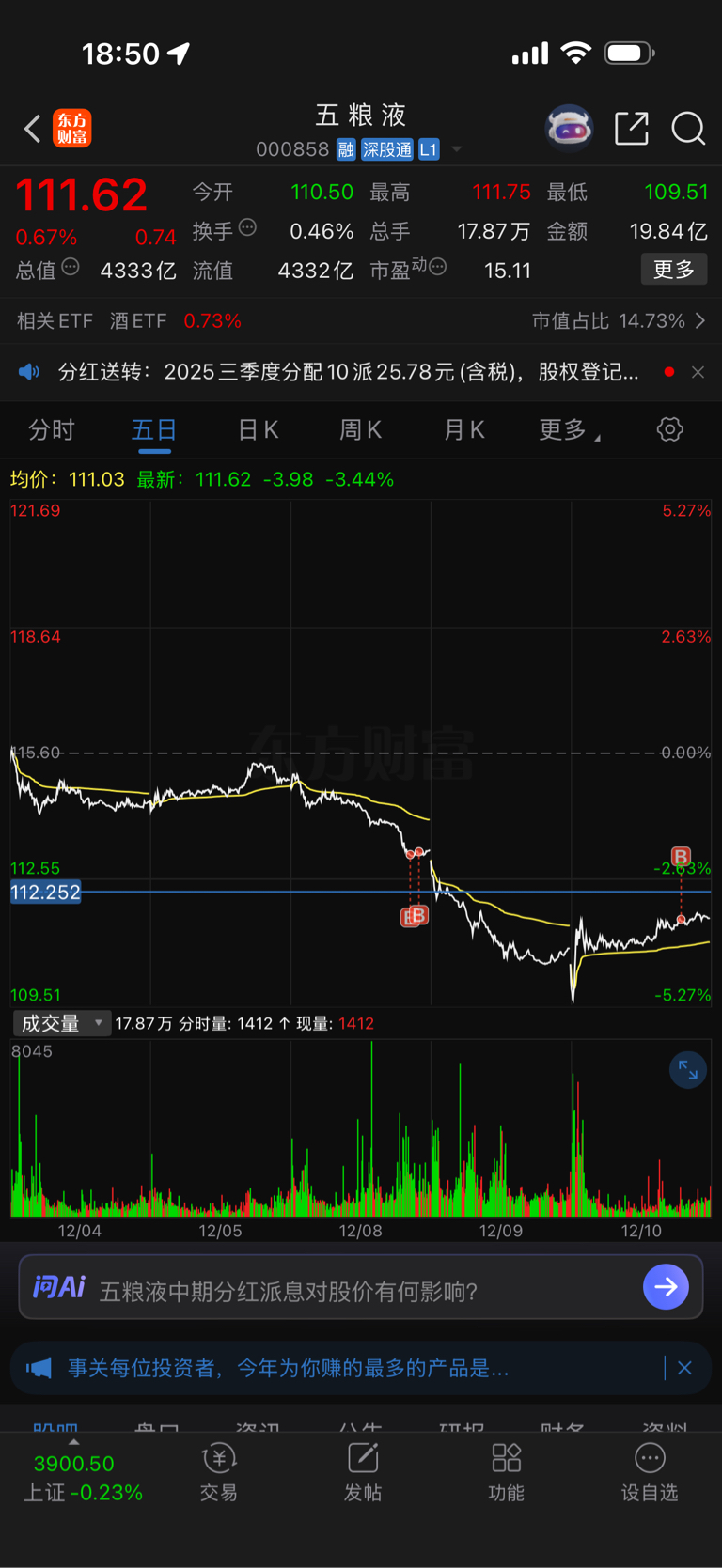 $五 粮 液(SZ000858)$ 进进出出干小五。不管多少,每次都是挣钱走的。这次如果跌破100,那就不好意思了,必须上仓位。期待2026年春暧花开硕果累累!