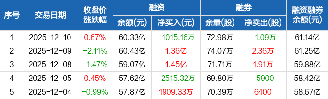 五粮液:融资净偿还1015.16万元,融资余额60.33亿元(12-10)