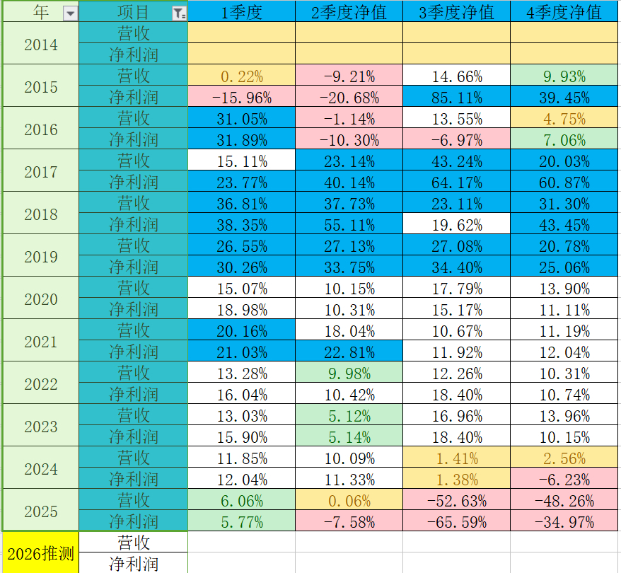 $五 粮 液(SZ000858)$ 从数据上看,2015-2019年处于高增长的阶段,2020-2023年增长放缓,2024年-2025年出现负增长,根据这些数据推算,2027-2028年情况会有好转,短期内有涨有跌总体向下。这个数据基本和股价的走势吻合