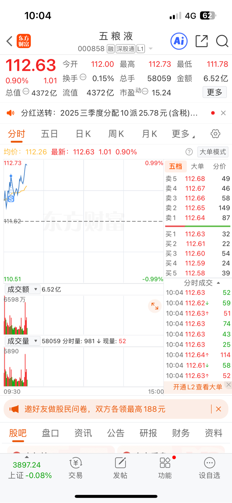 $五 粮 液(SZ000858)$ 就这样了,前天进来的,赚了点油钱 留下的兄弟们发财