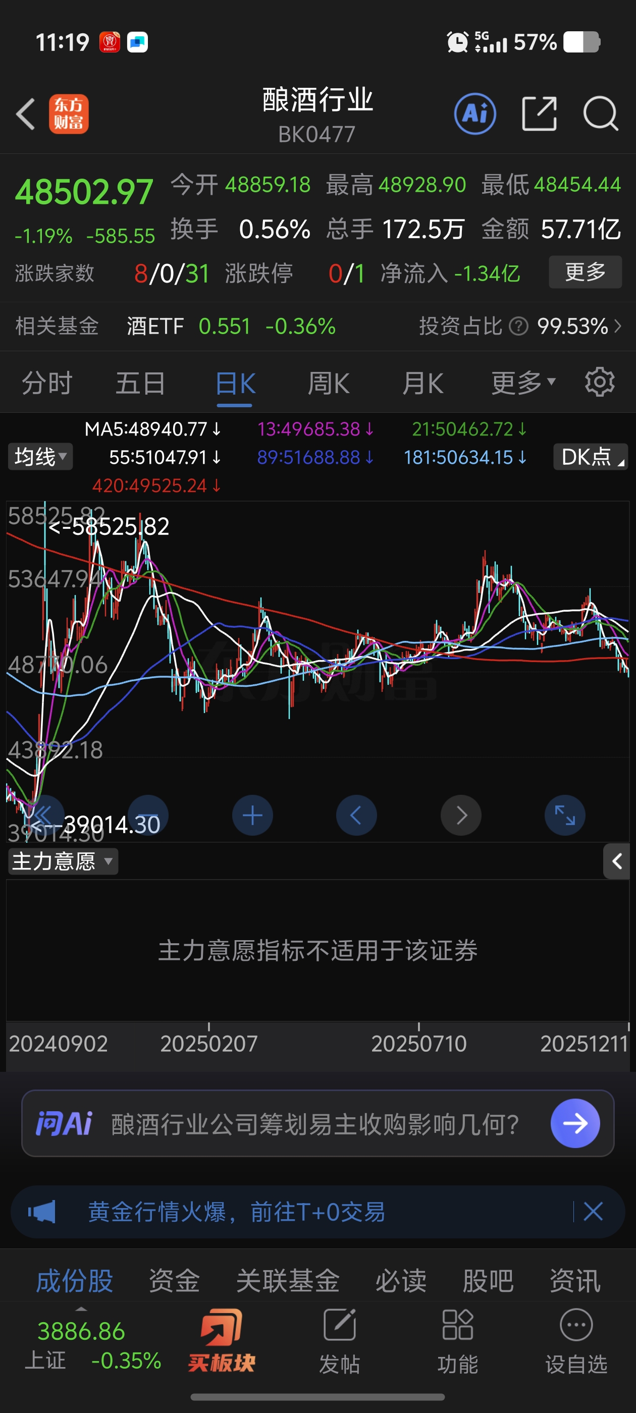 个股跌成狗了,酿酒板块才开始筑二底,第二个黄金坑大准备梭哈