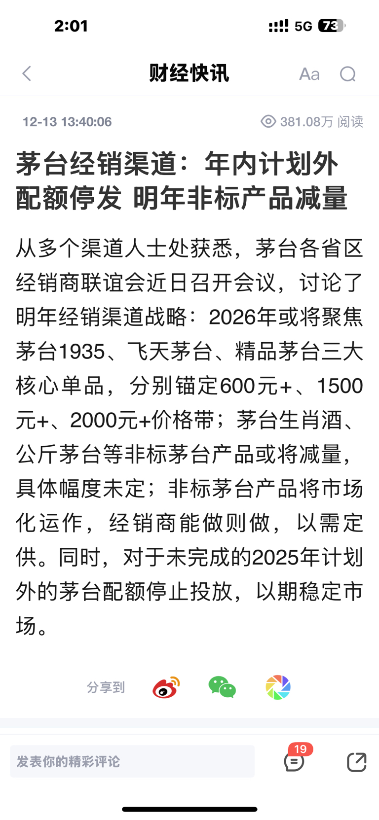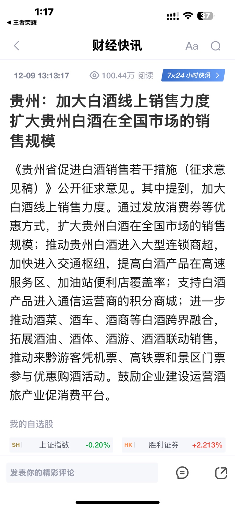 行啦,茅台控价了!公司也给底了1500+,今天茅台价格反弹了,飞天以外的也尽可能不给压力了,飞天53度核心还是供不应求的,只是别的单品拖累,现在看来不管是五粮液还是茅台都开始维护销售渠道了,股价重技术面也都符合底部特征!贵州省也大力支持酒的发展!cpi也逐步回暖!宏观到微观我觉得都到位了!现在白酒个股基本统一走势!五粮液股息率5%,优先考虑!周一加仓!