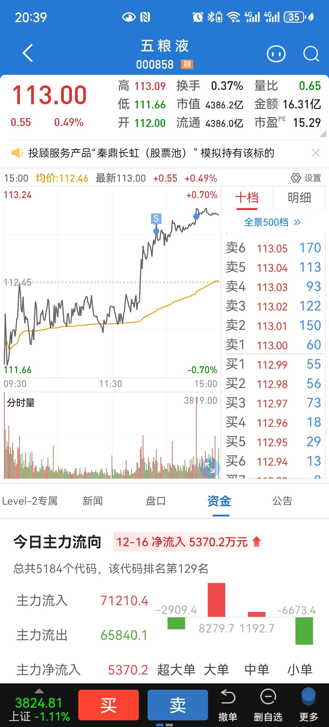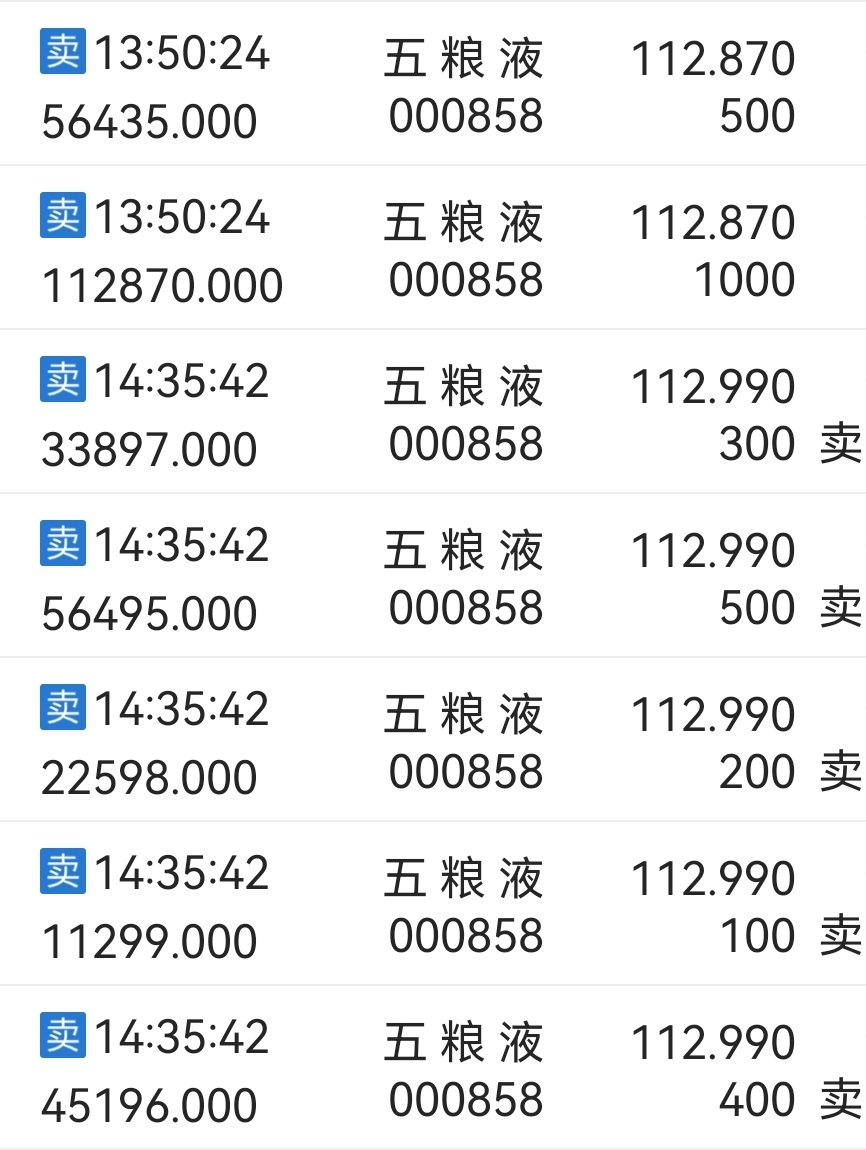 $五 粮 液(SZ000858)$ 持股1周左右。 成本做到112。今天全部卖出。今天什么日子大家都知道。大家说我做的对吗?