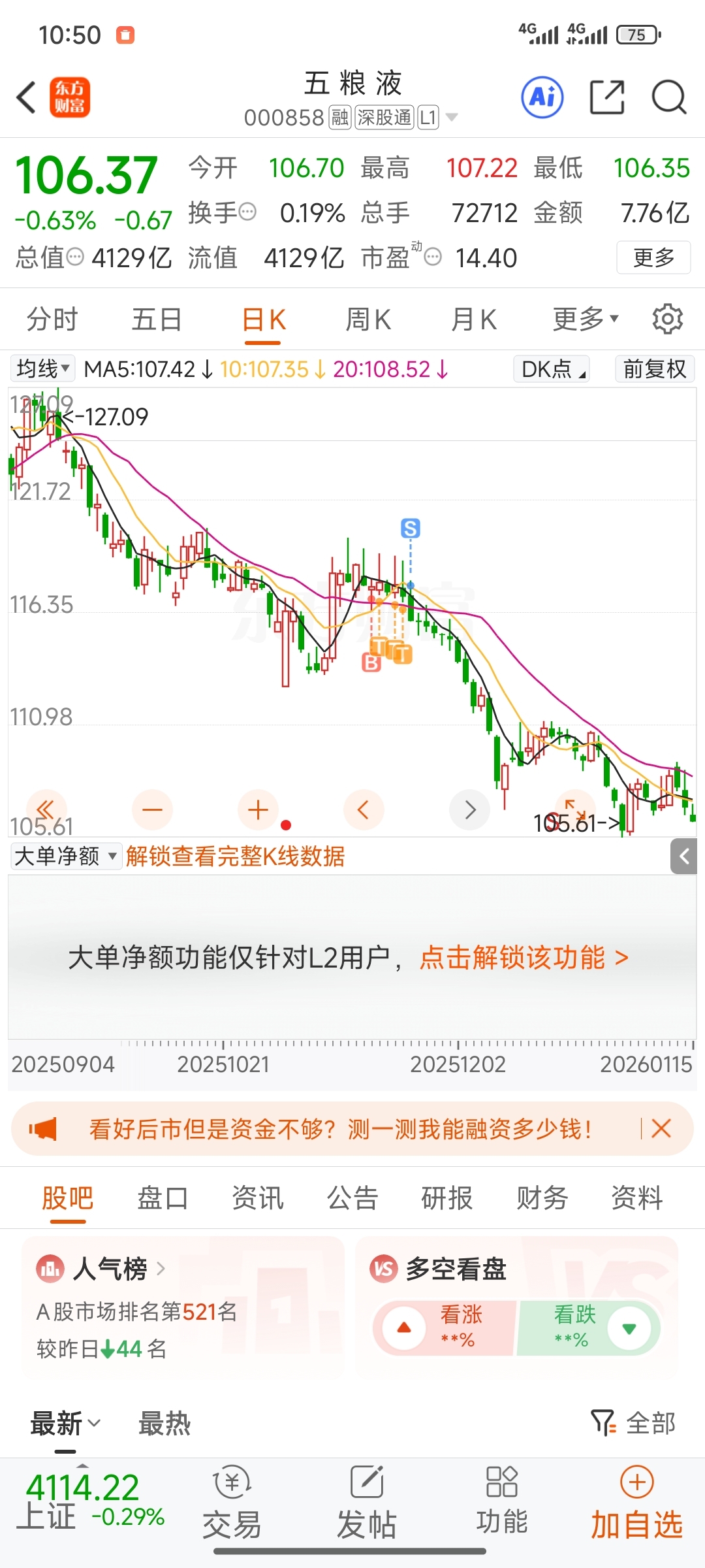 $五 粮 液(SZ000858)$ 两个月前赚了千把块钱出来再也没有进来过,现在想想不是能力有多强,而是运气特别好。