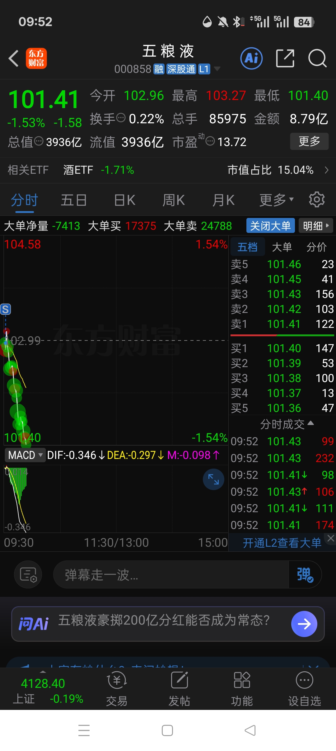 $五 粮 液(SZ000858)$ 开盘就割