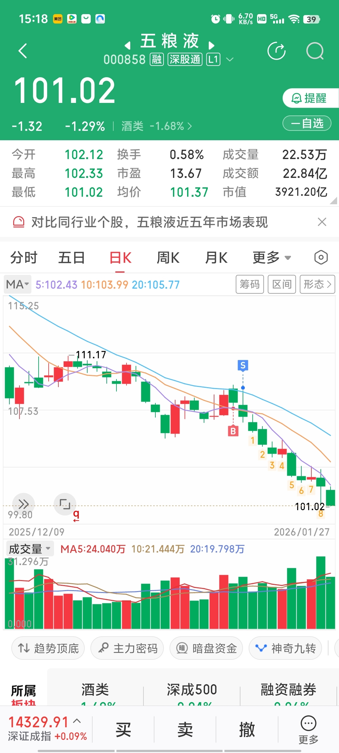 $五 粮 液(SZ000858)$ 看底不是底,幸好跑了,最低点74去了,20年199亿利润的价格