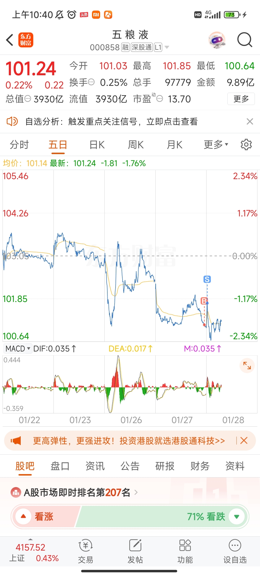 $五 粮 液(SZ000858)$ 想想最高点跑了,还行