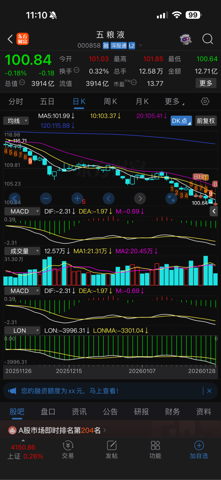 $五 粮 液(SZ000858)$ 入坑第4天,跌N天入坑,入坑后又跌了4天