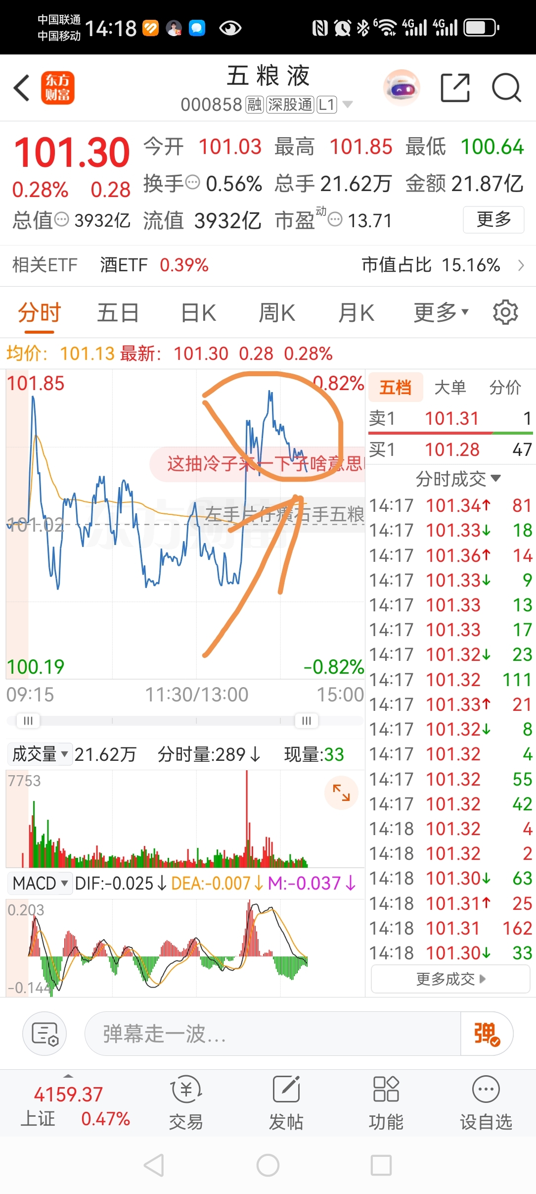 $五 粮 液(SZ000858)$ 划线的地方是龙头,你们看看,一直在压制着,一旦突破,一飞冲天!