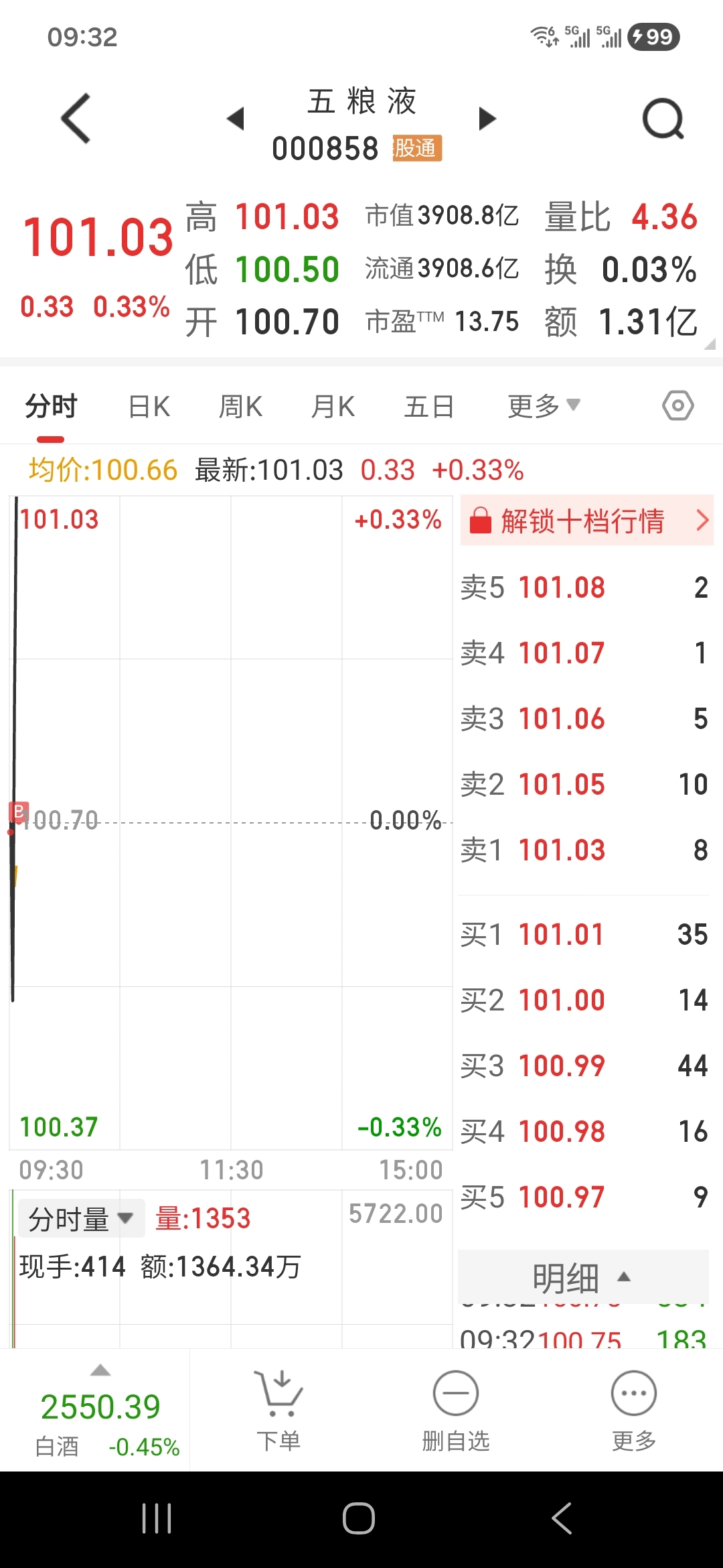$五 粮 液(SZ000858)$ 开盘继续买了一点!