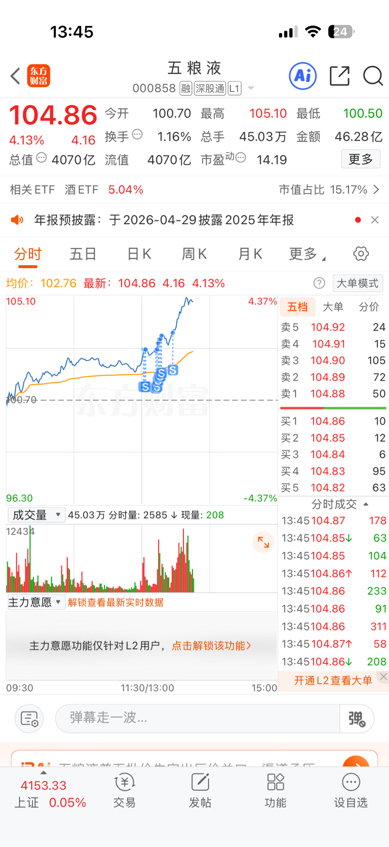 $五 粮 液(SZ000858)$ 大伙说说,我卖的准吗?