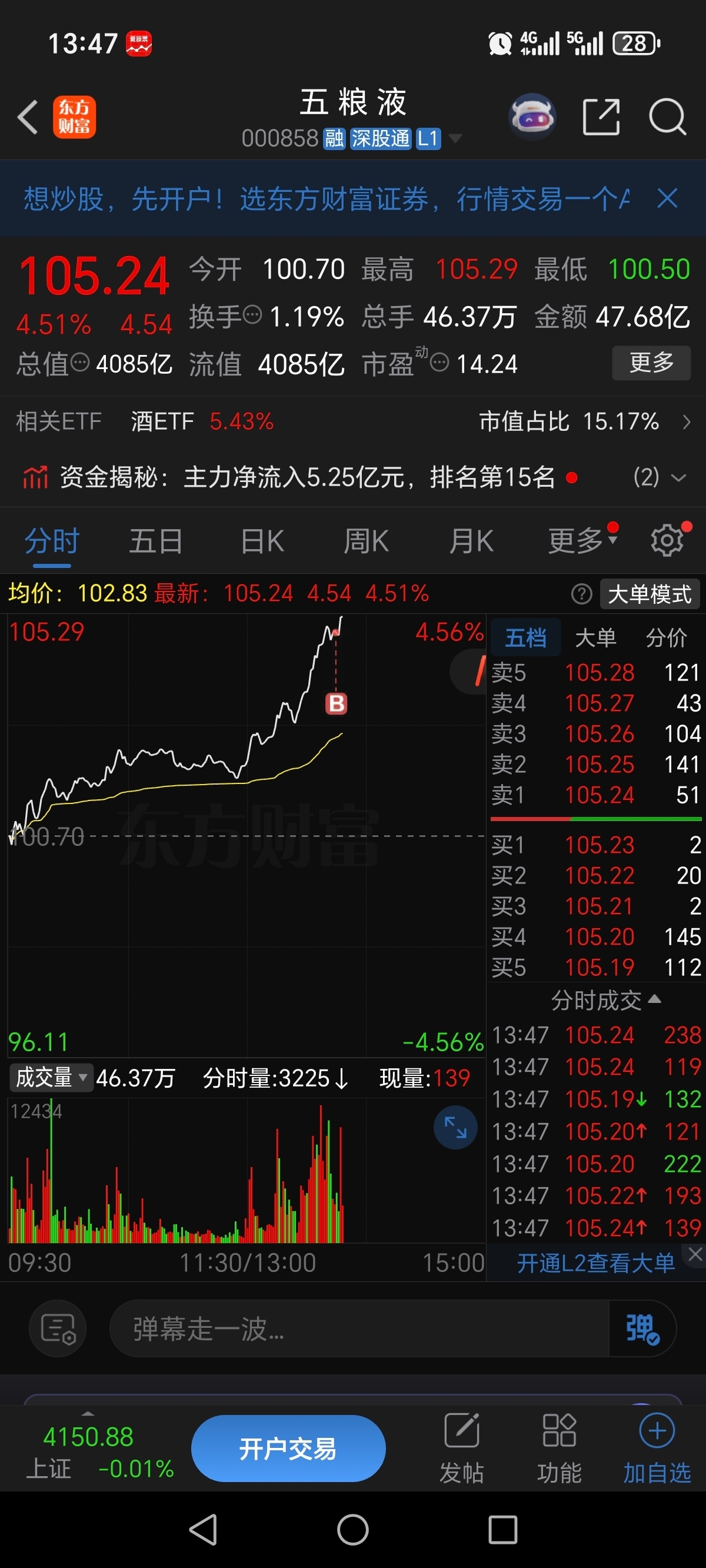 104.8,果断入手$五 粮 液(SZ000858)$