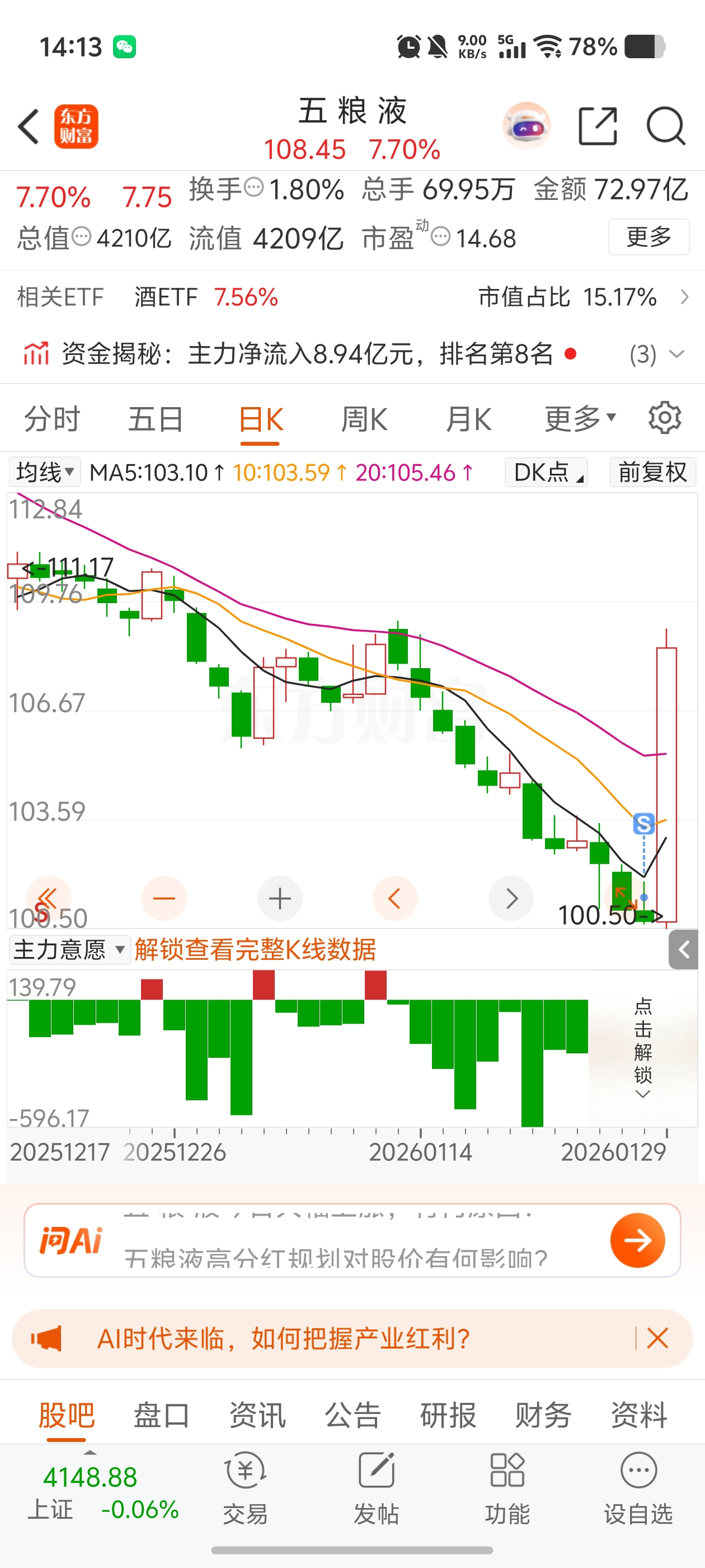 $五 粮 液(SZ000858)$ 我拿了1600多天,昨天割了,今天暴涨?就那么看重我那三瓜两枣?!