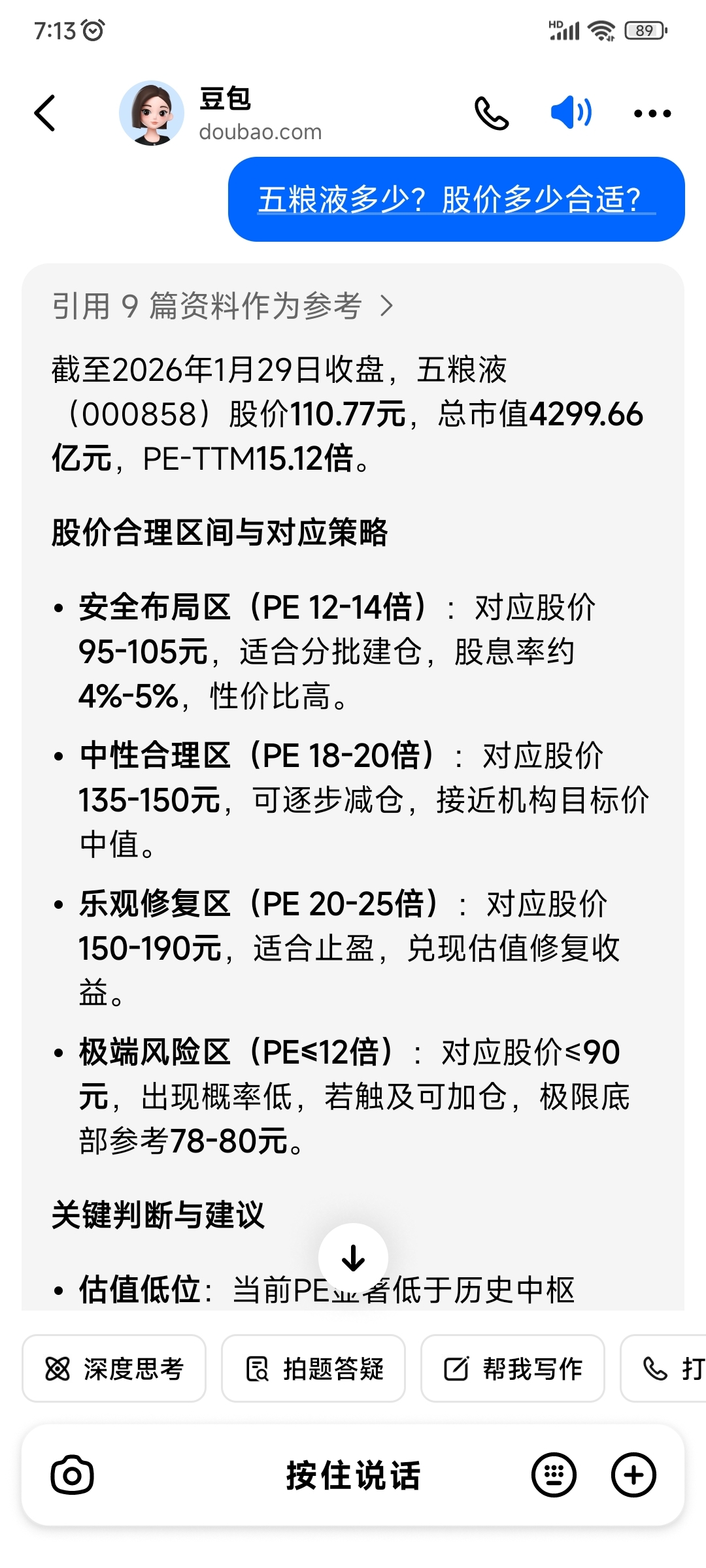 $五 粮 液(SZ000858)$ 豆包给的价格