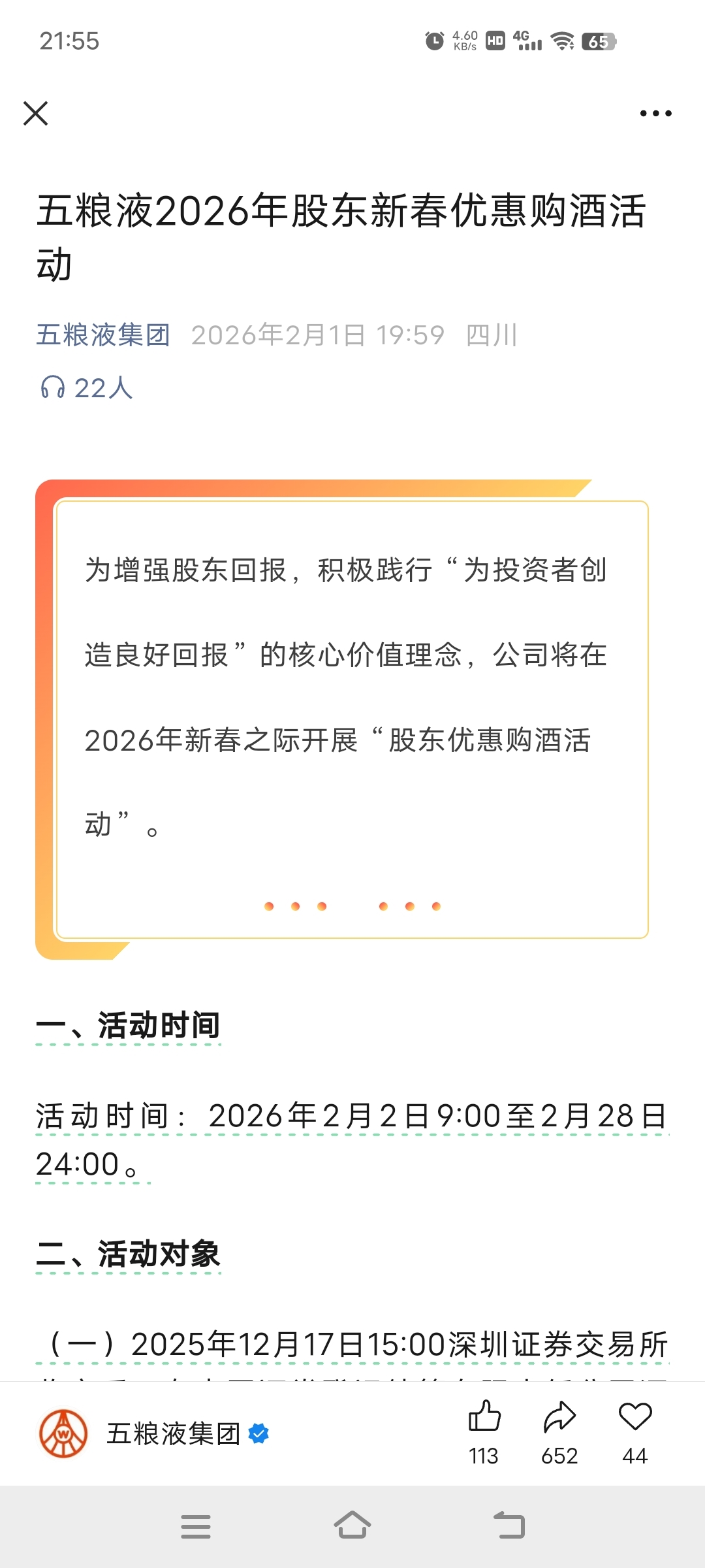 $五 粮 液(SZ000858)$ 五粮液出股东优惠购酒活动
