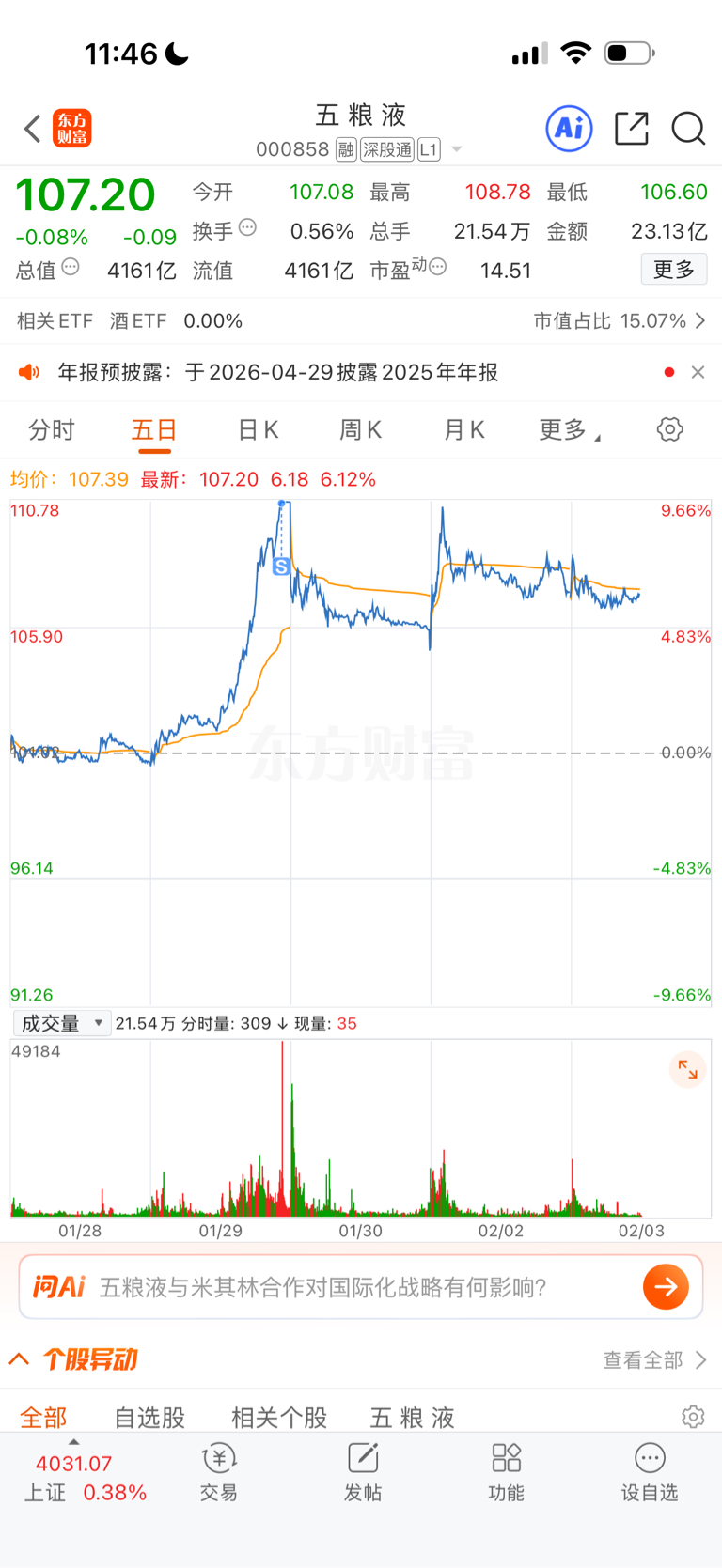 $五 粮 液(SZ000858)$ 前两天涨停卖了,知道这货超跌反一起游,你慢慢跌我慢慢补,现在有现金是老大,还怕没机会抄底吗