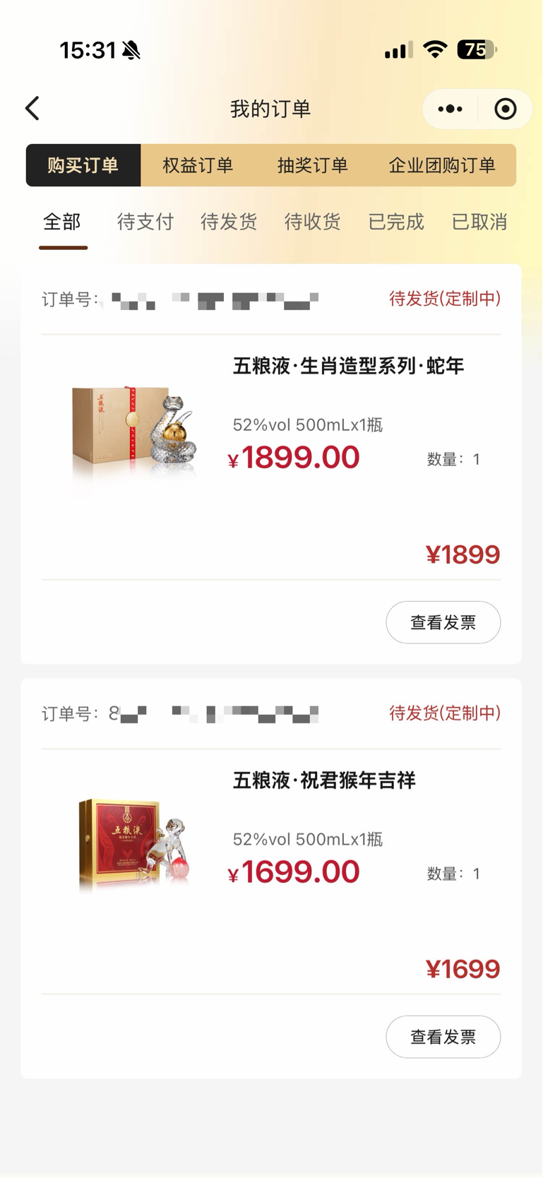 $五 粮 液(SZ000858)$ 定制中...静待发货。虽然不如抢到的生日号码五星茅子70周。但好歹是股东纪念。