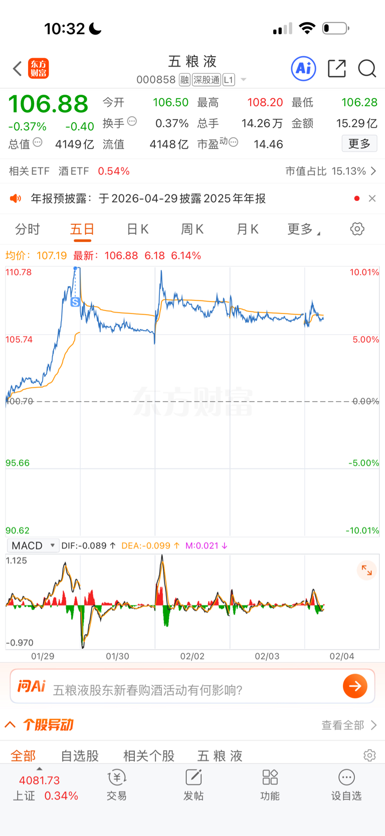 $五 粮 液(SZ000858)$ 110涨停卖的,就知道你的德性,高于100想让我补门都没有