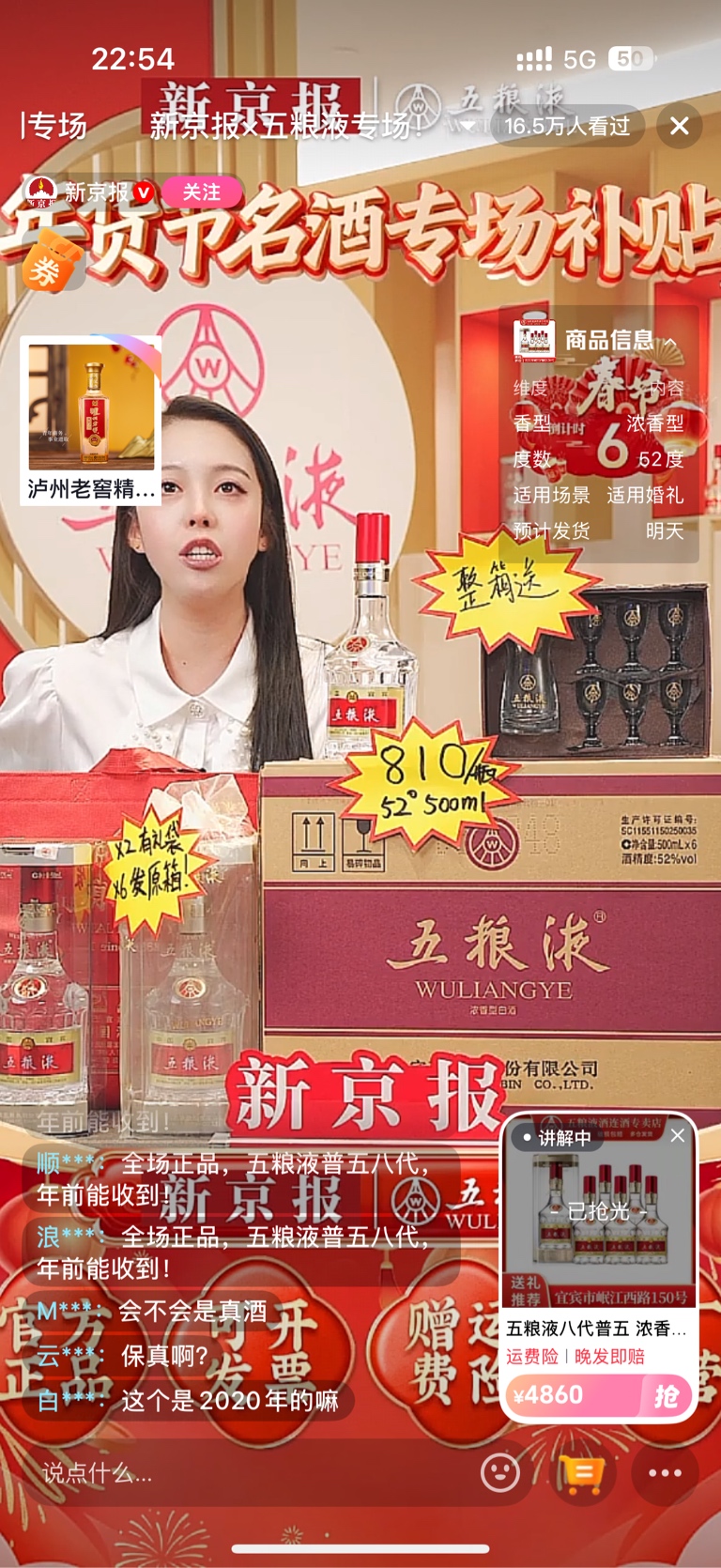 $五 粮 液(SZ000858)$ 新京报天天直播间不播新闻,卖你这个酒,你26年业绩能不能翻倍??我前几天可是买了你的
