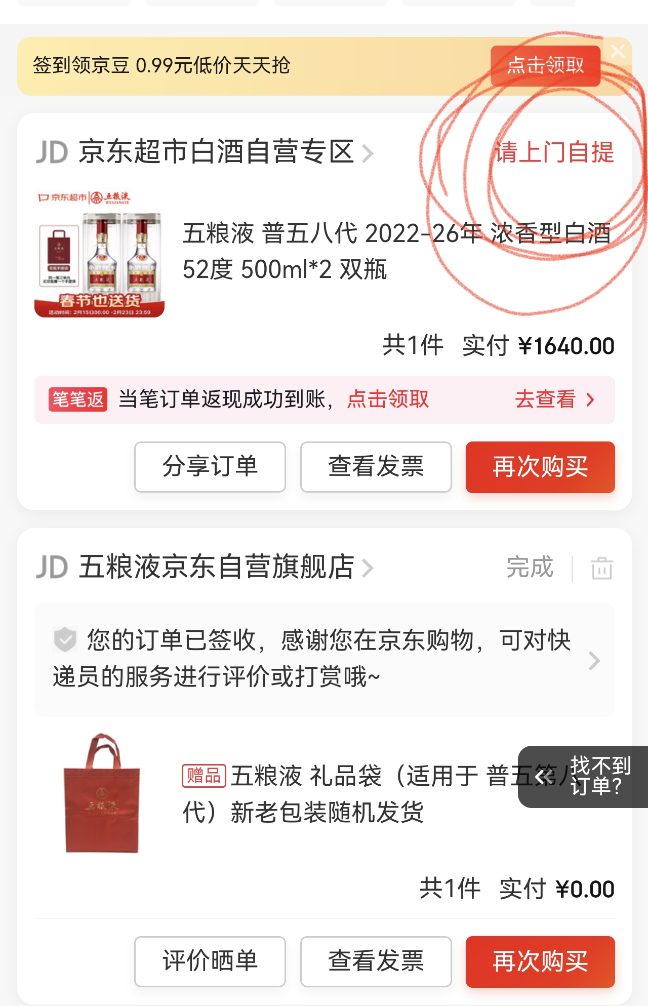 $五 粮 液(SZ000858)$ 买了两瓶,让我自己去提货,真了,退货了