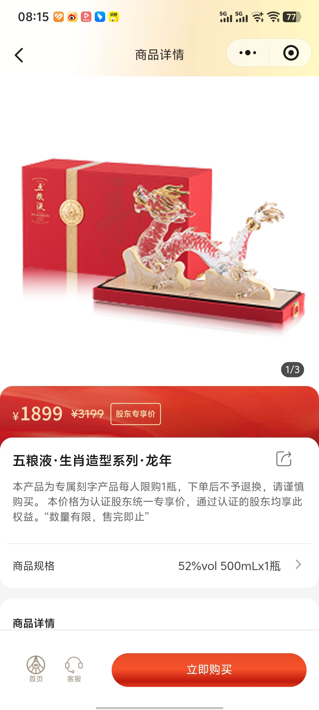 大家新年快乐,五粮液龙年纪念酒有货,大家快去买啊