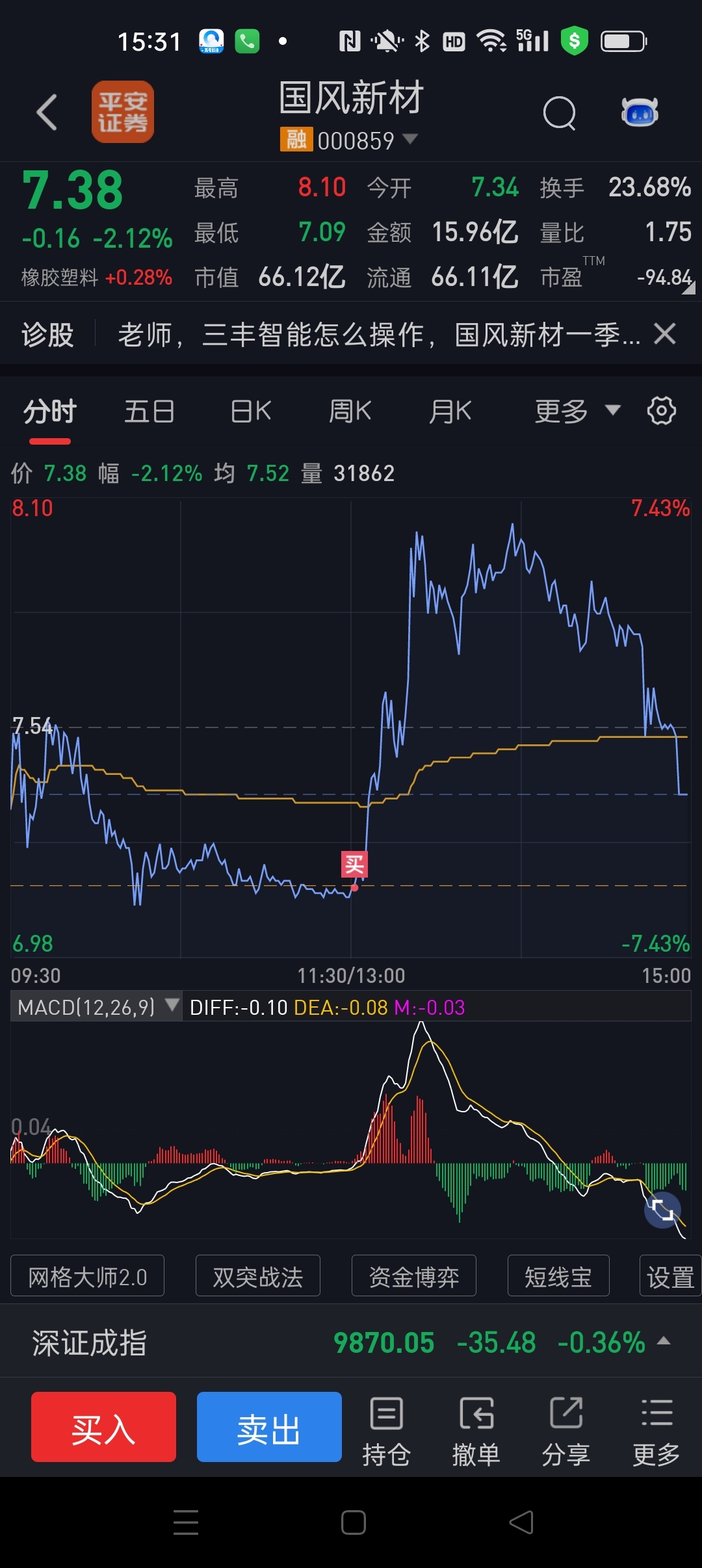 $国风新材(SZ000859)$ 白开心了,明天能安全出来吗?
