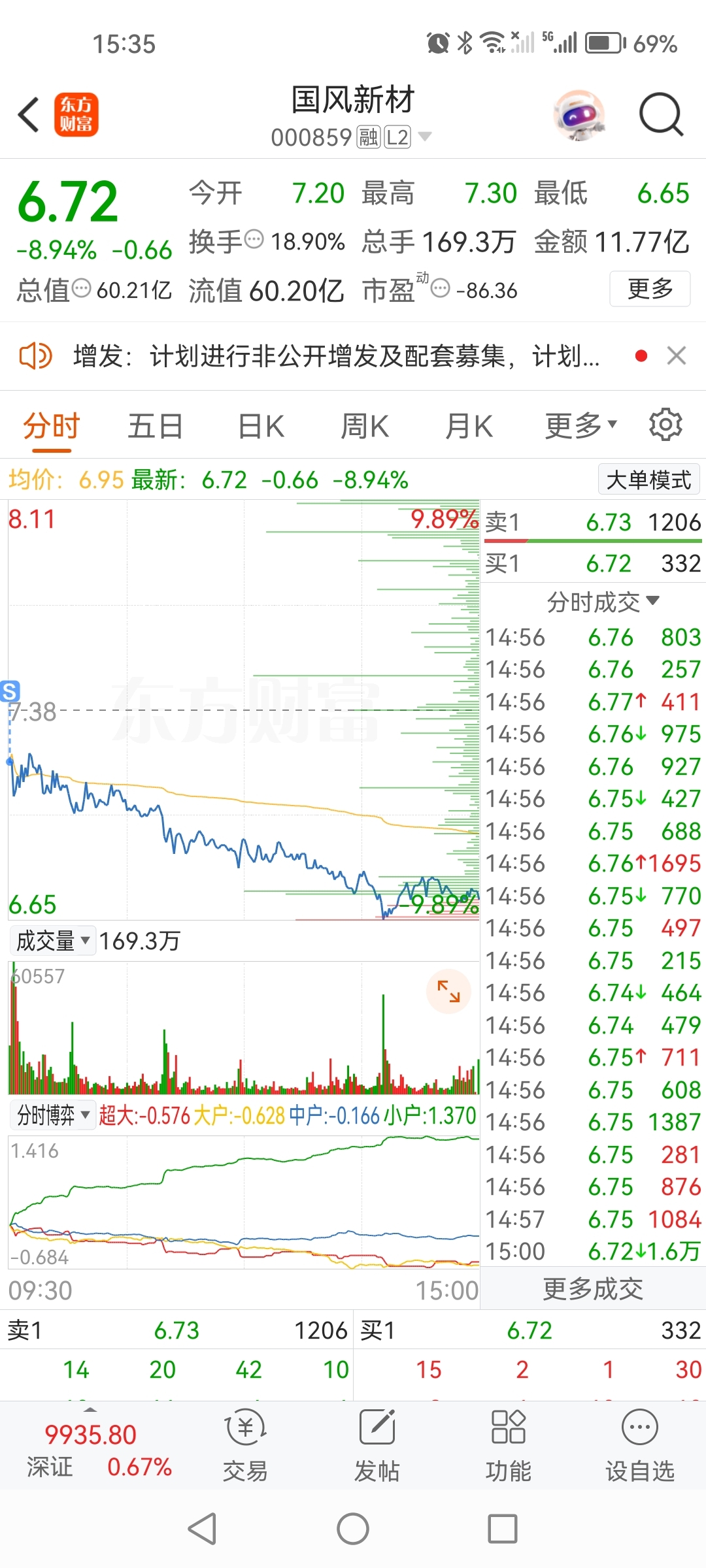$国风新材(SZ000859)$ 哇噻!你好能跌哦!哦!你以为昨天把我套了我就舍不得割你是吧?我反正几百股,不红开哥哥直接割了给你就是!不过我还是看好你的哈!五一节左右我再来抄你底,明后天给我继续使劲跌使劲砸