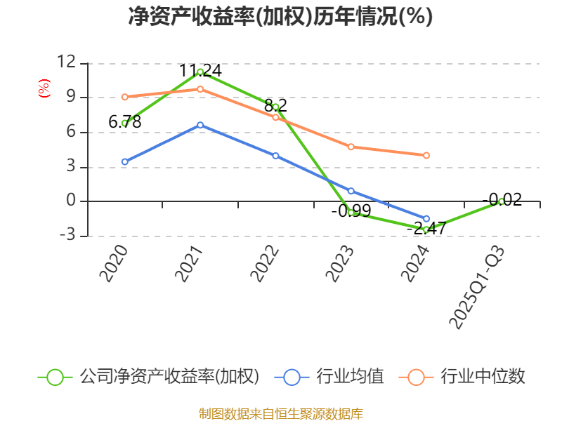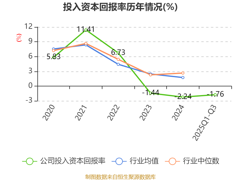 盈利能力方面, 2025年前三季度公司加权平均净资产收益率为-0.02%,同比上升2.69个百分点。公司2025年前三季度投入资本回报率为-1.76%,较上年同期上升0.73个百分点。