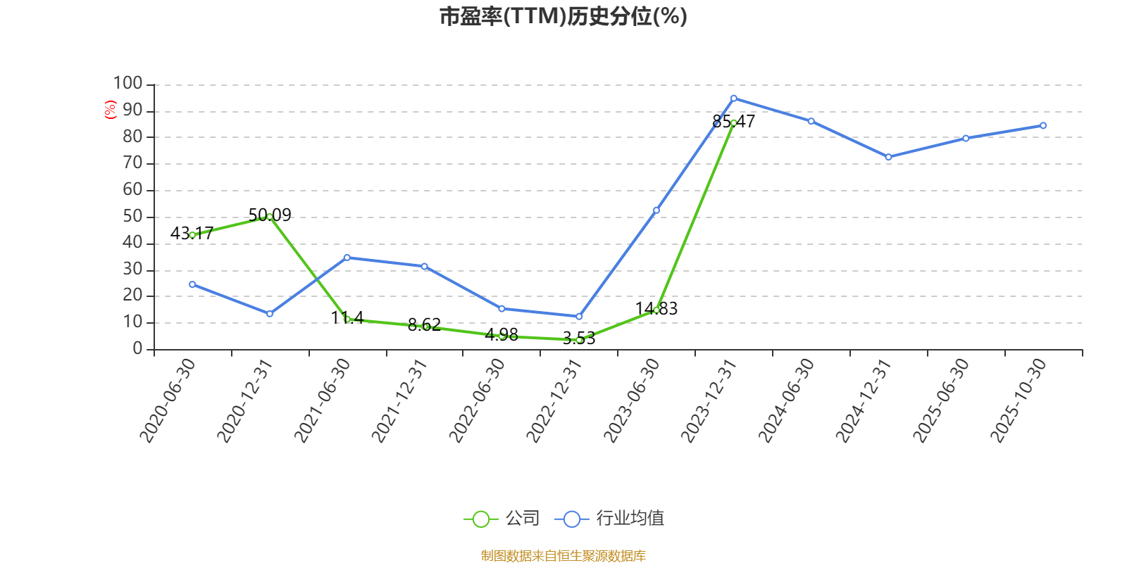 市盈率、市净率为负时,不显示当期分位数,会导致折线图中断。