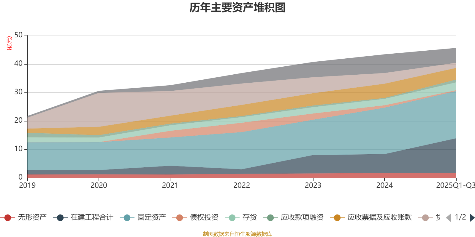资产重大变化方面,截至2025年三季度末,公司在建工程合计较上年末增加84.06%,占公司总资产比重上升11.49个百分点;货币资金较上年末减少52.48%,占公司总资产比重下降4.78个百分点;应收票据及应收账款较上年末减少17.87%,占公司总资产比重下降2.52个百分点;其他非流动资产较上年末减少58.86%,占公司总资产比重下降2.46个百分点。