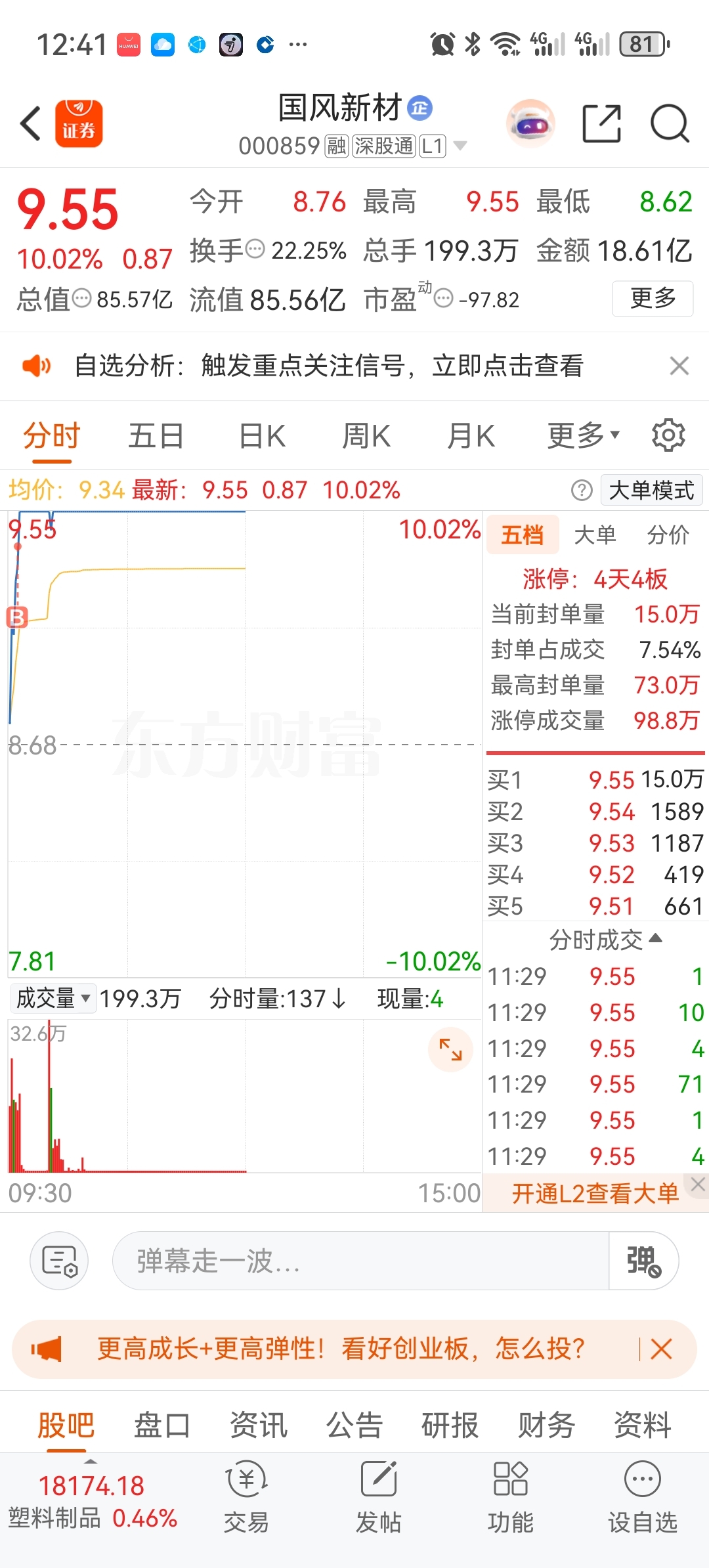 $国风新材(SZ000859)$ 明天再板卡掉中水就是跨年啦