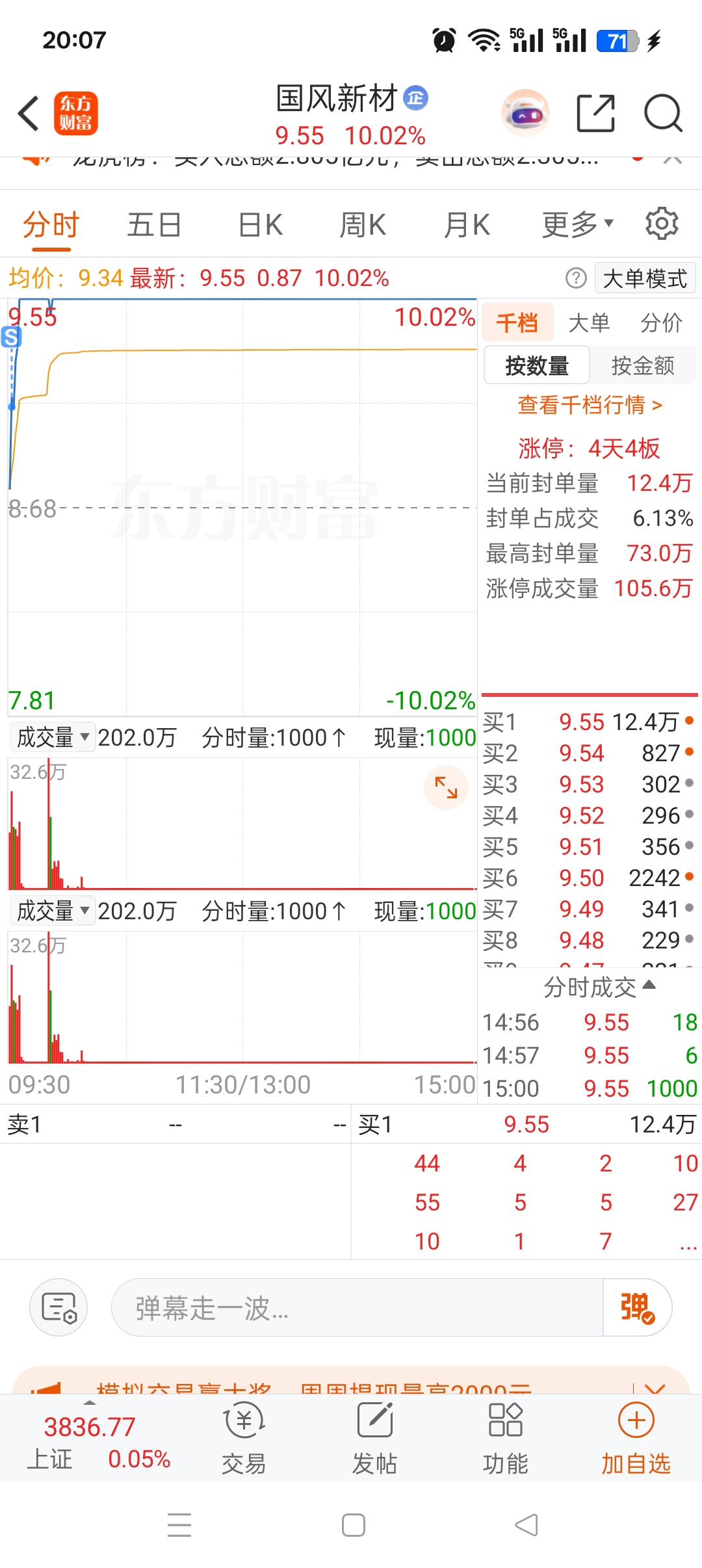 $国风新材(SZ000859)$ 最近每天卖飞一个板